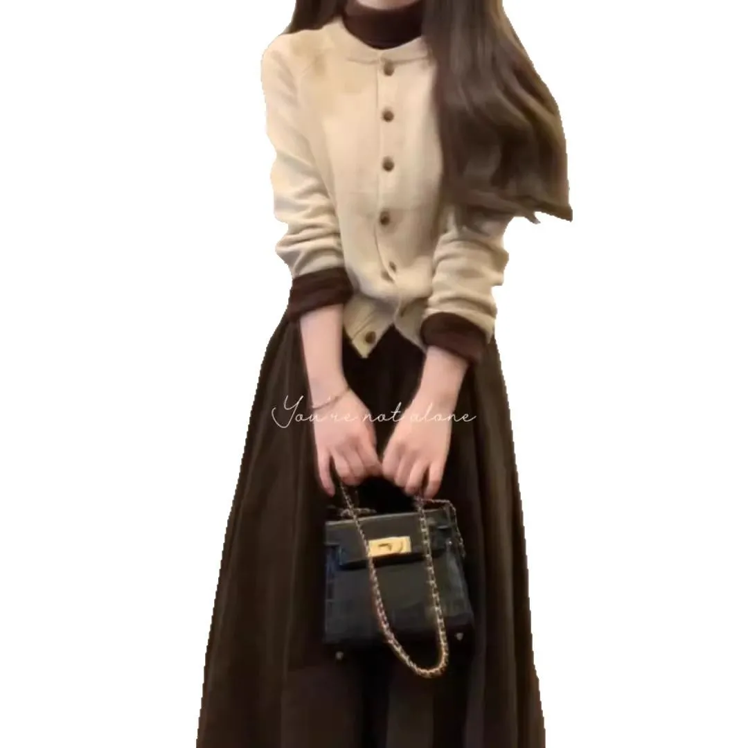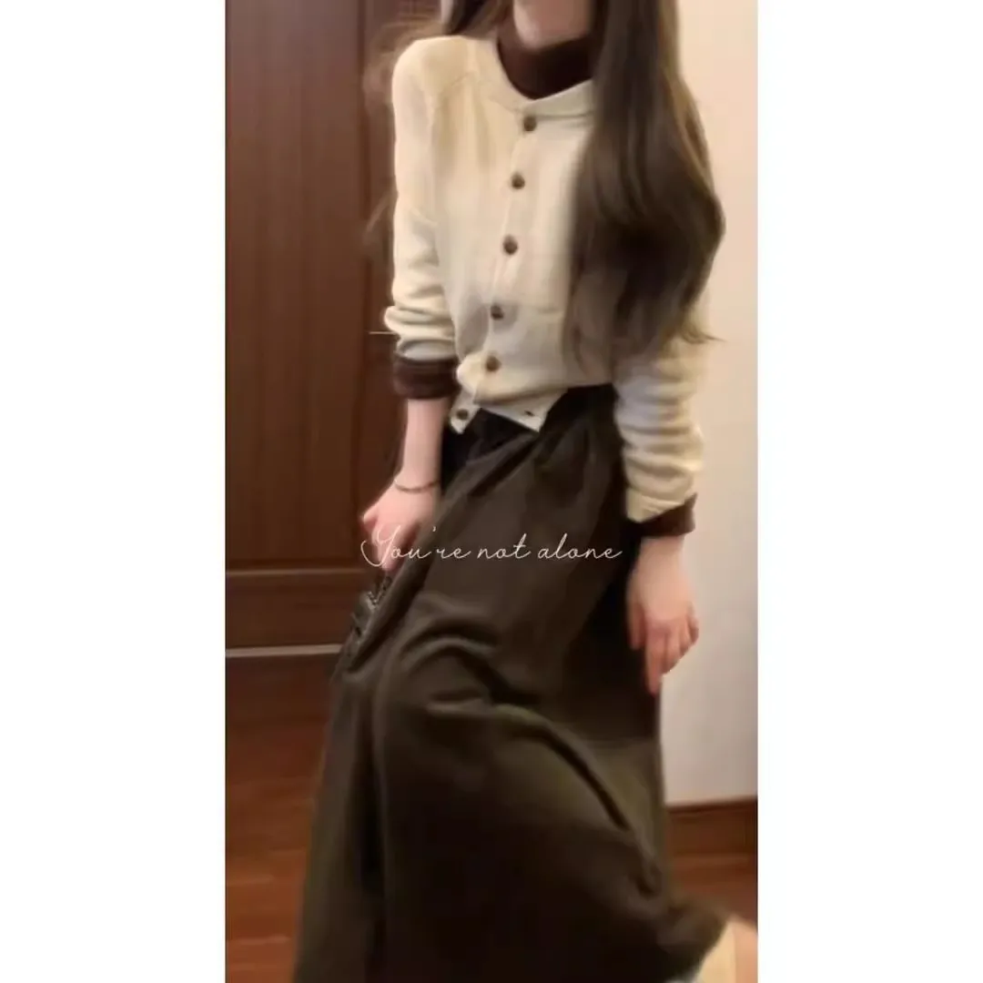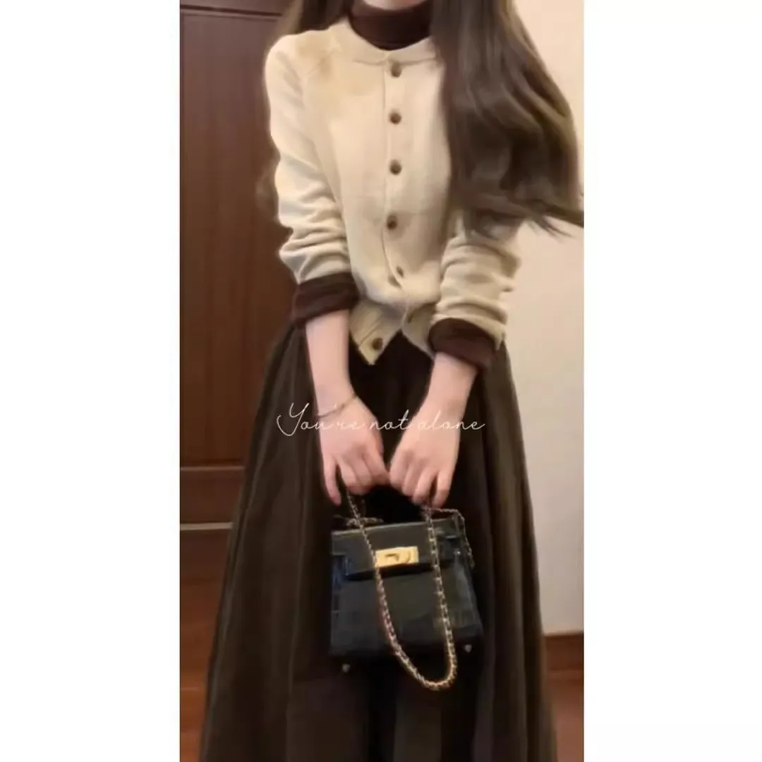2025春季韩系穿搭一整套百搭打底显瘦减龄针织衫高腰半身裙三件套