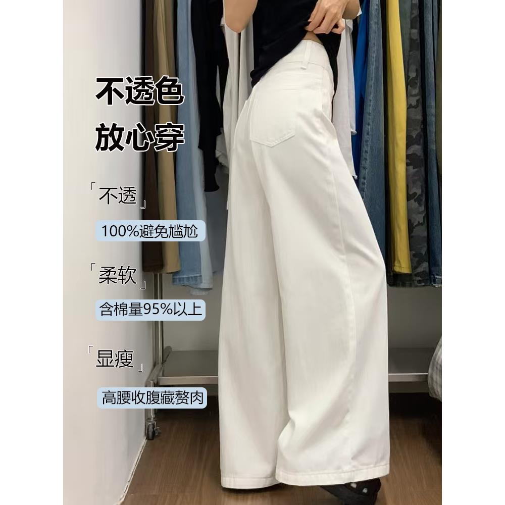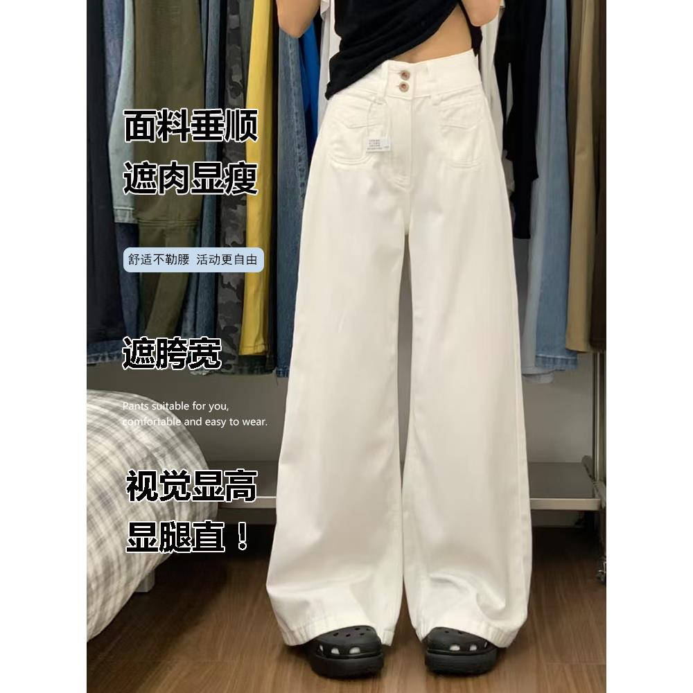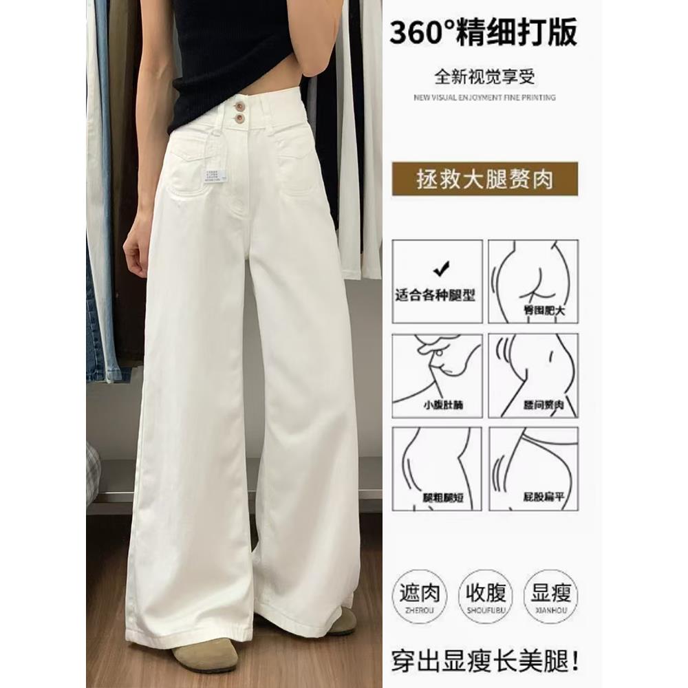 白色阔腿牛仔裤女秋季2025新款小个子宽松高腰垂感高级感直筒裤子