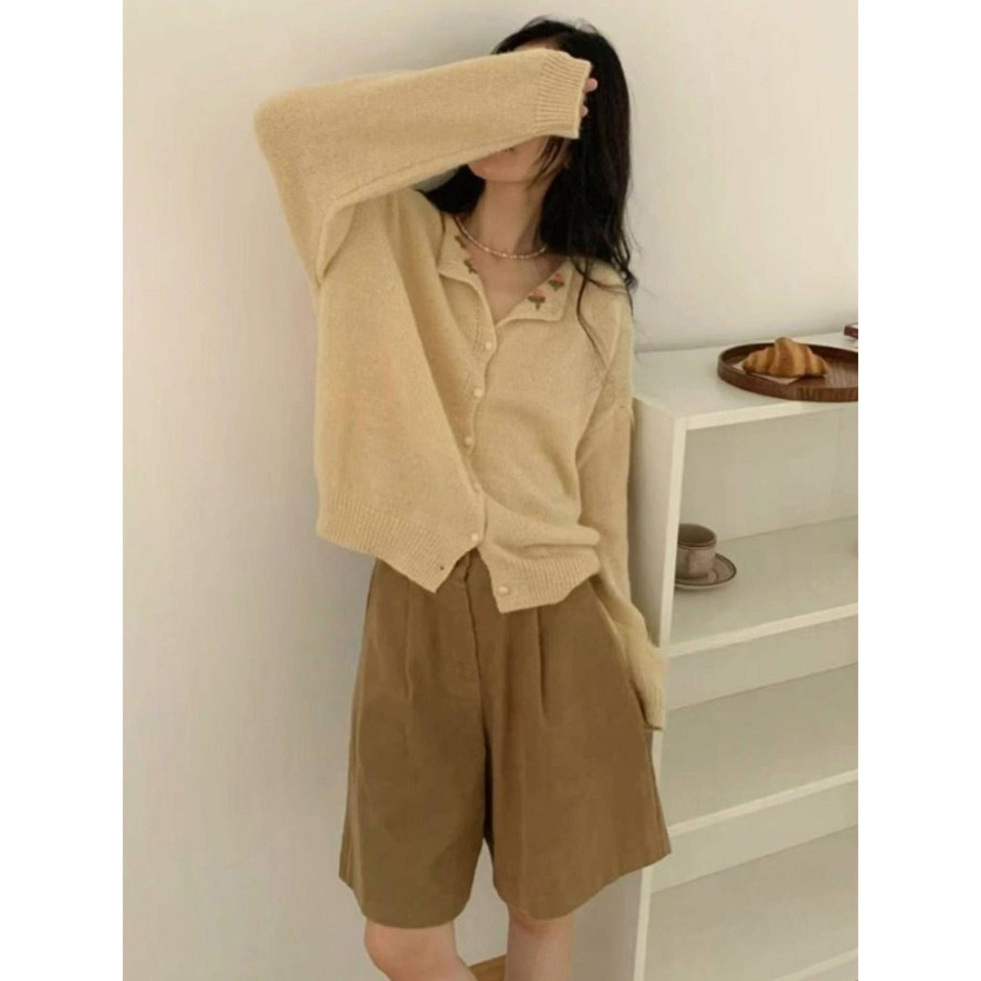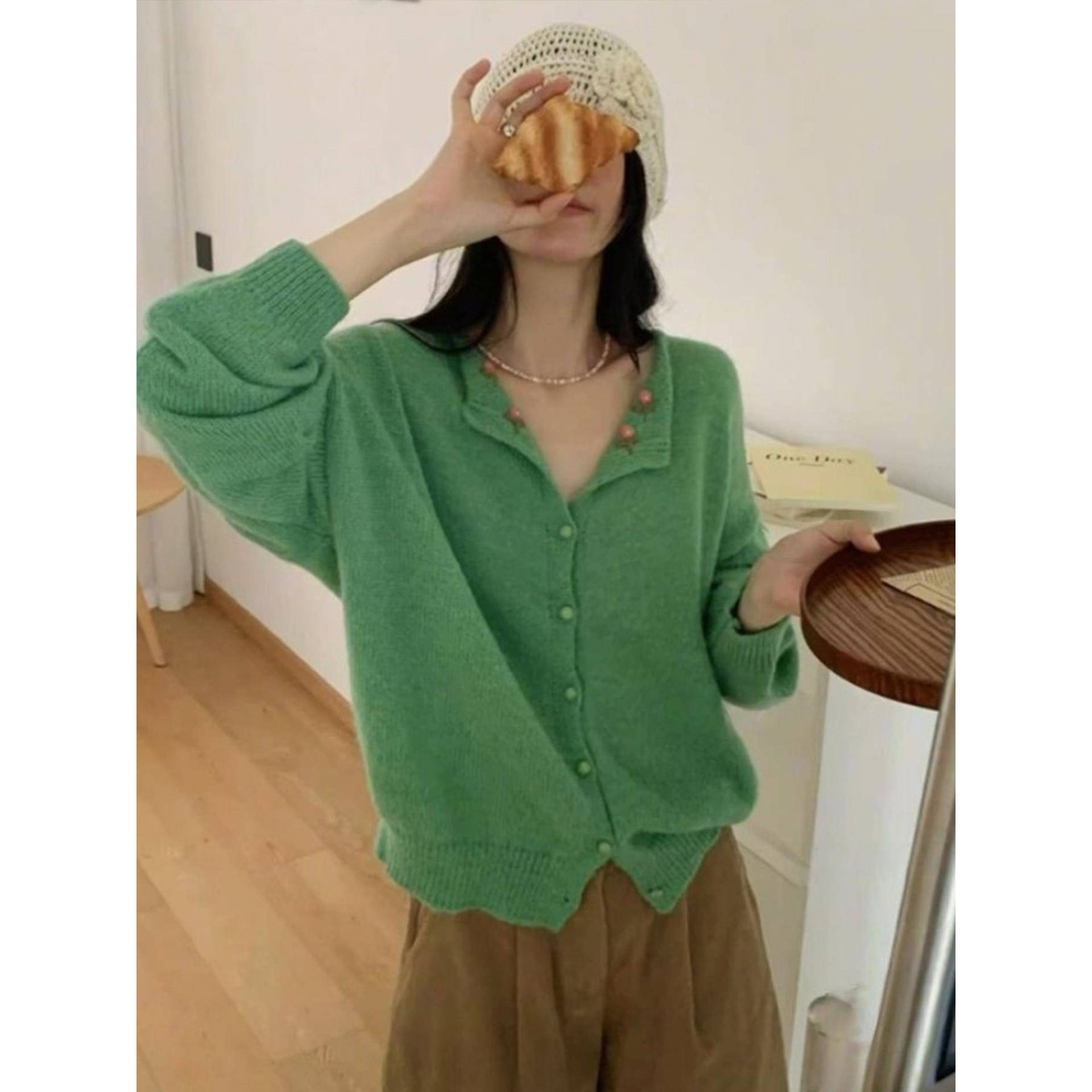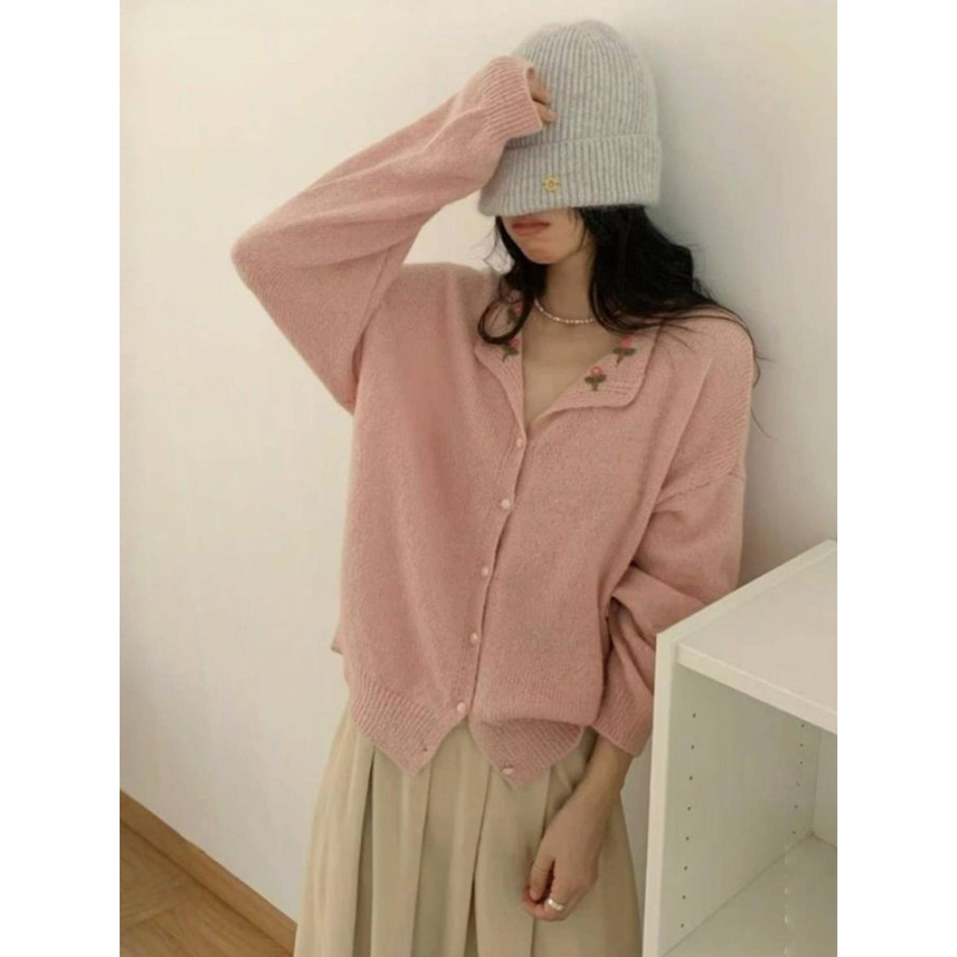 多巴胺黄色花朵设计感长袖针织开衫女2025新款早秋氛围感穿搭上衣