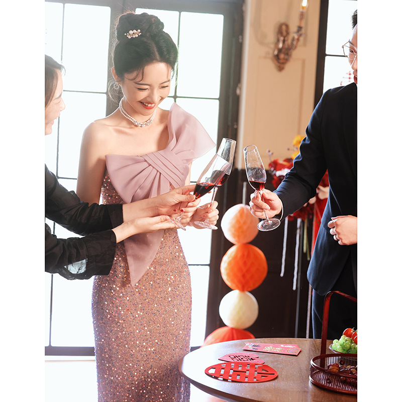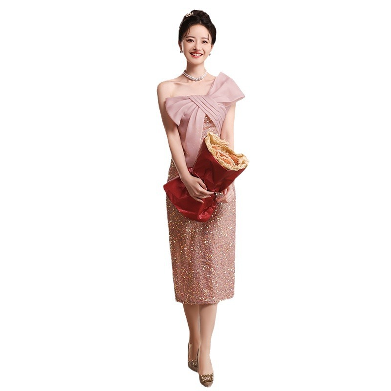 新款敬酒服女粉色礼服新娘礼服小个子结婚订婚婚礼礼服女回门便装