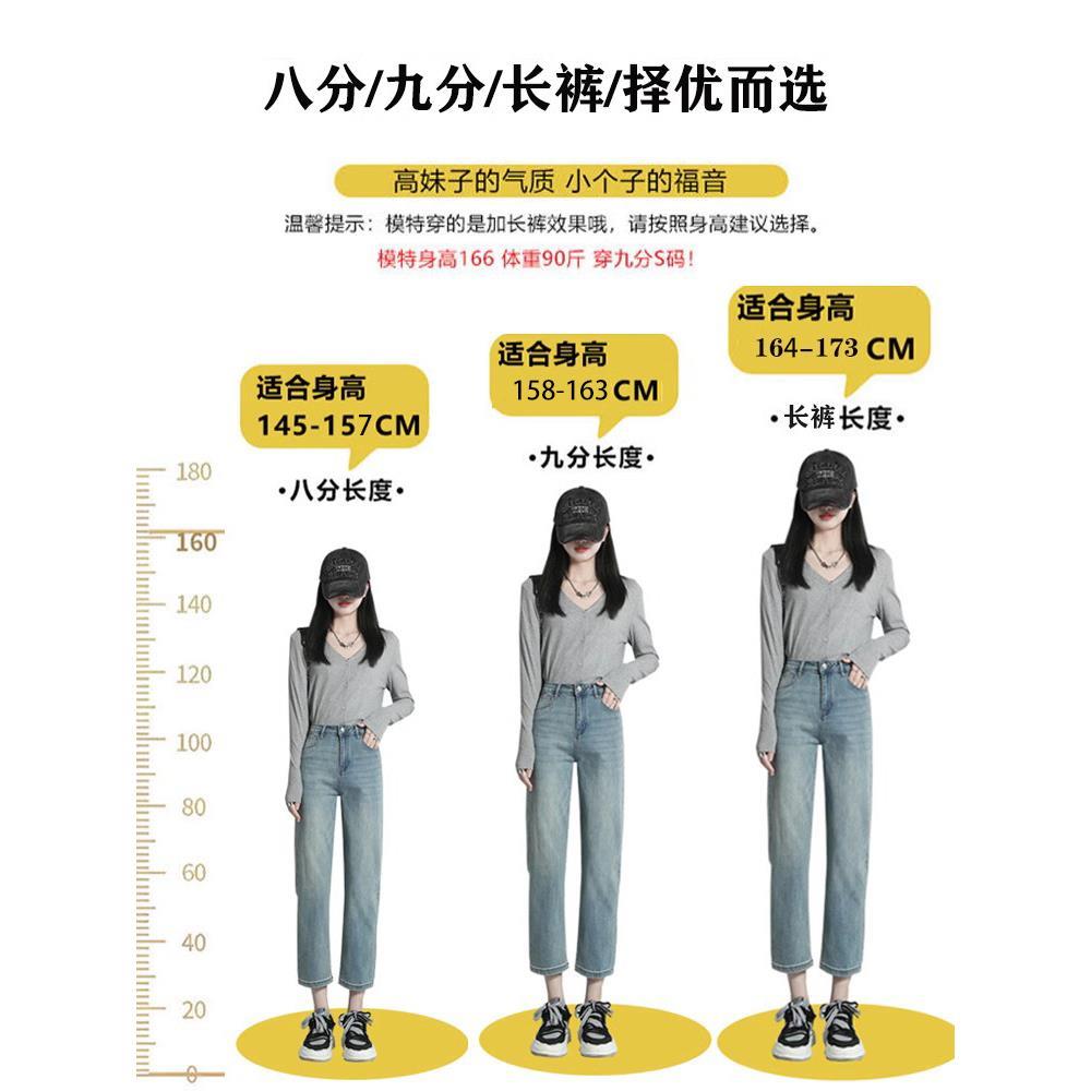 直筒牛仔裤女2025新款爆款春夏高腰宽松显瘦浅色九分窄版烟管裤子