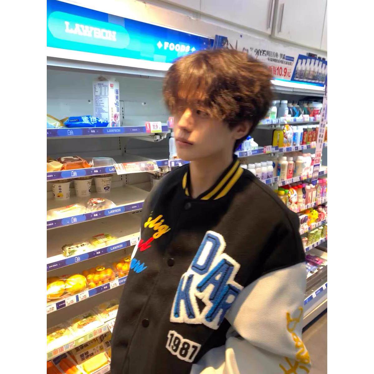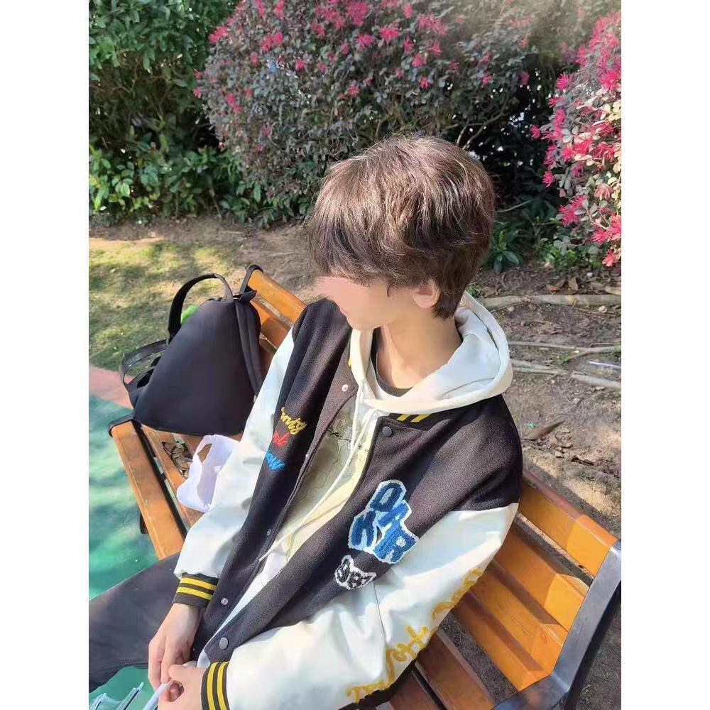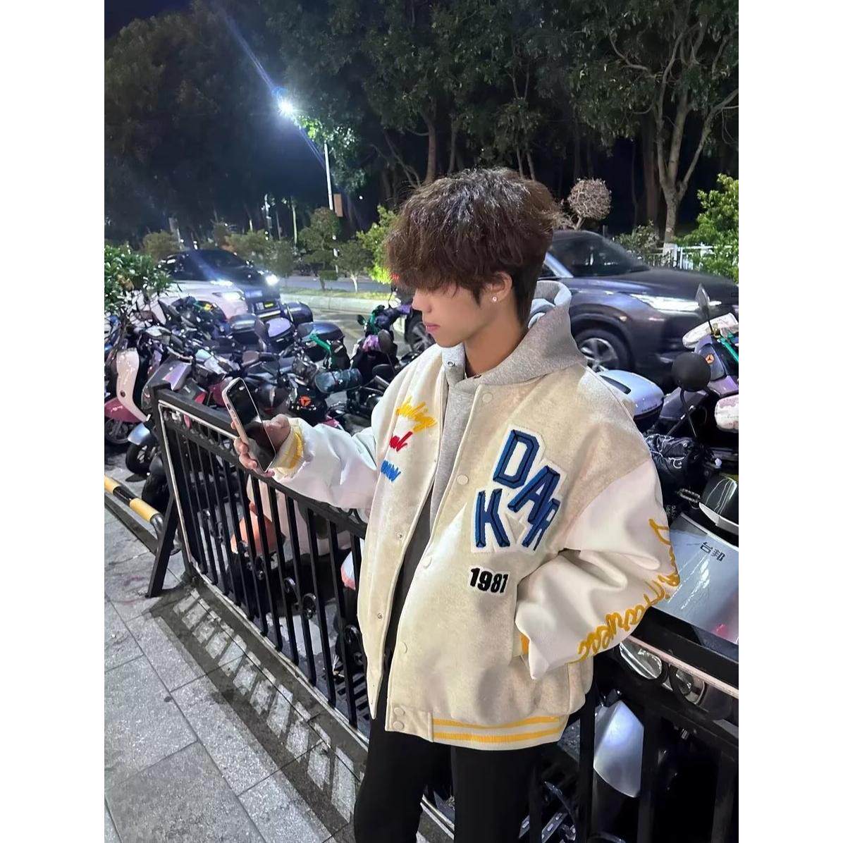 国潮美式字母植绒毛巾刺绣棒球服外套男女春秋季复古百搭加厚夹克