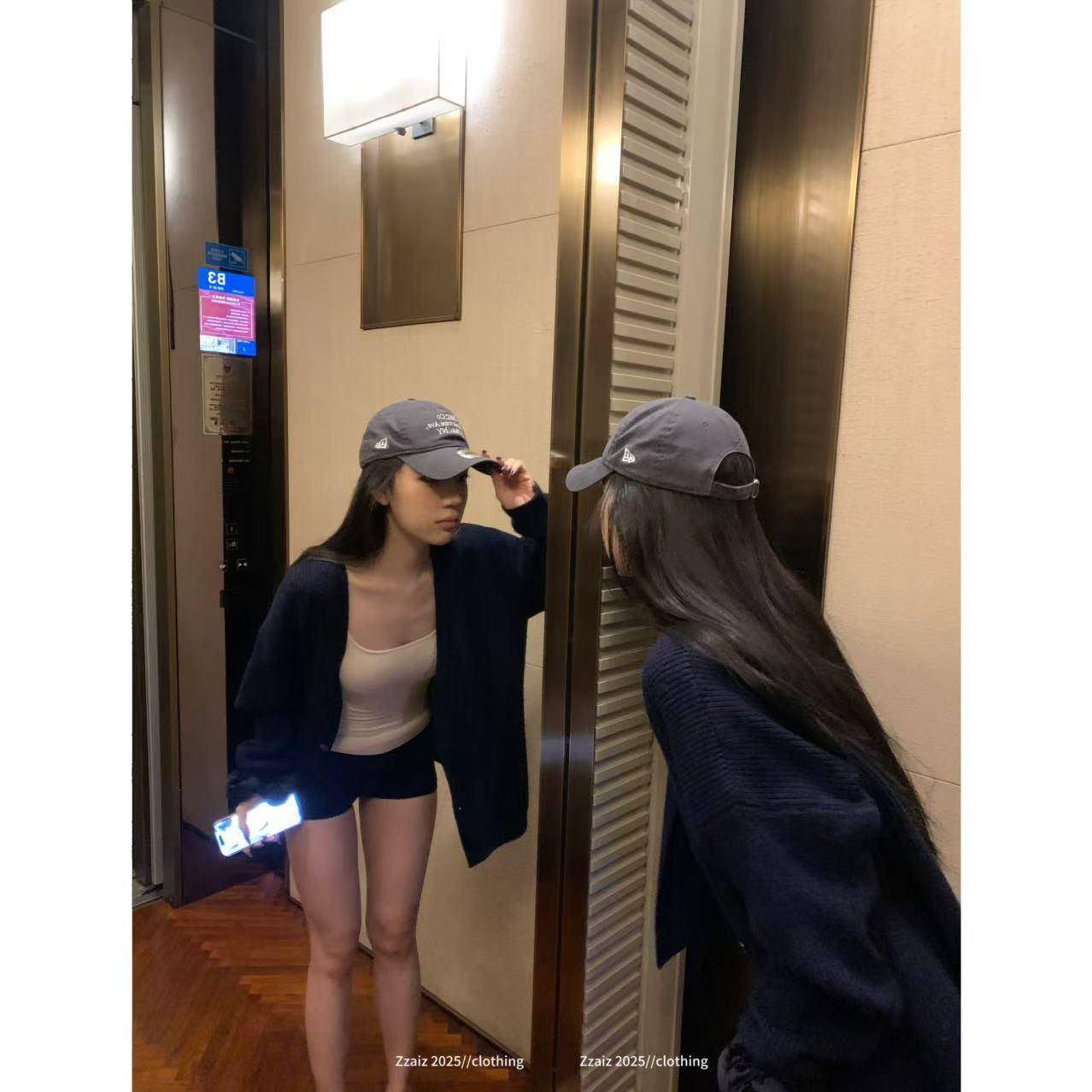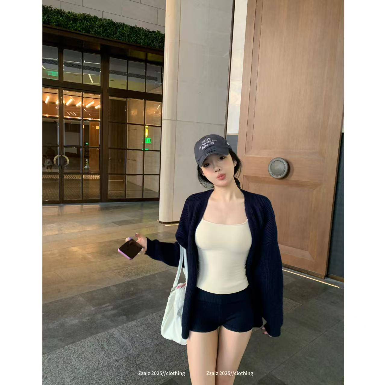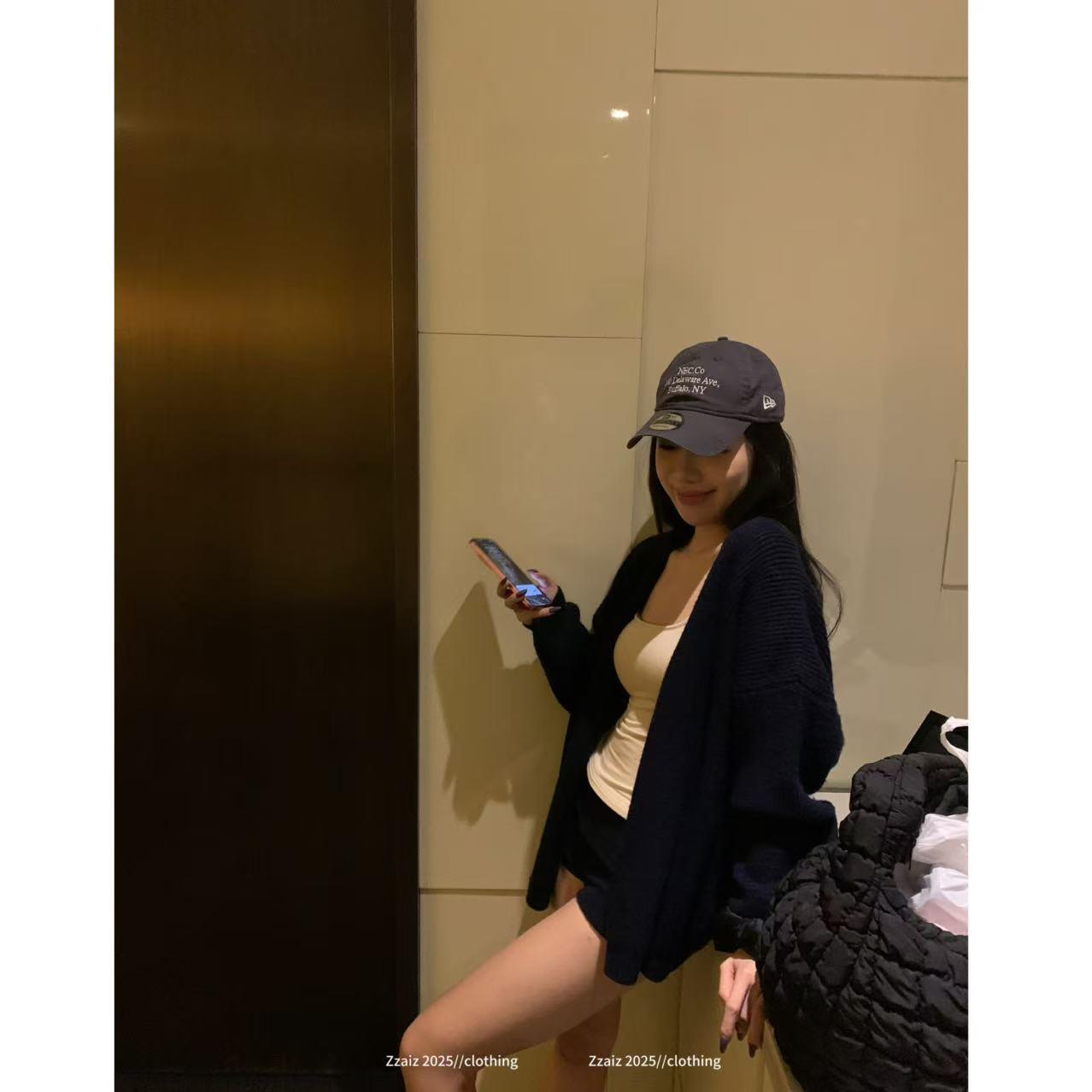 2024冬季街头风女装慵懒风纯色毛衣开衫 厚款中长显瘦V领开衫
