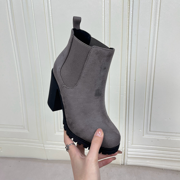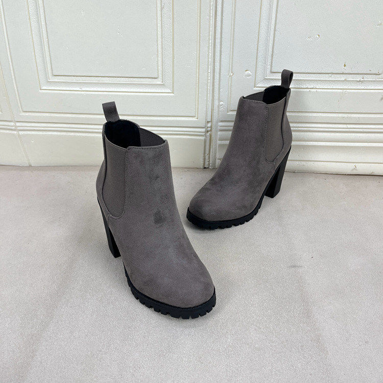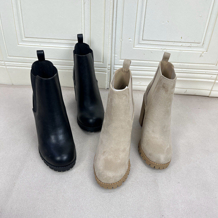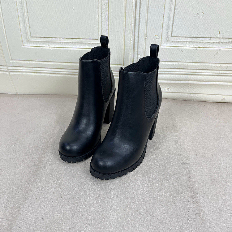外贸原单女靴新款时尚圆头纯色粗高跟防水台套筒时装短靴烟筒靴