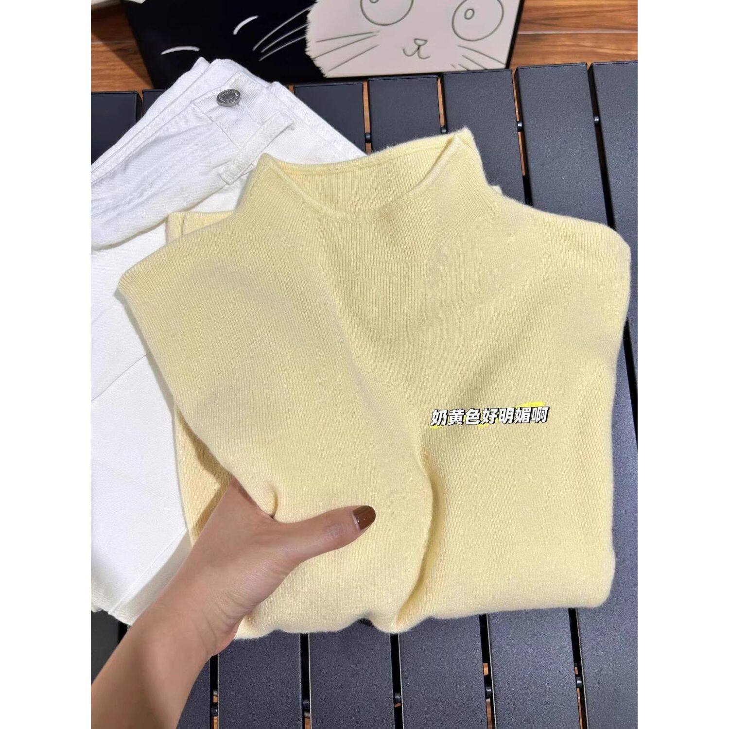 今年流行的爆款小鸡黄打底衫女内搭秋冬毛衣半高领叠穿针织衫上衣