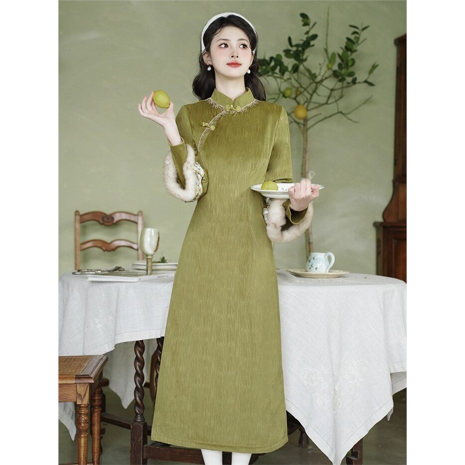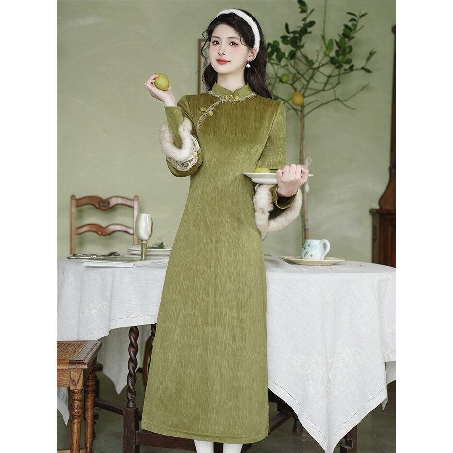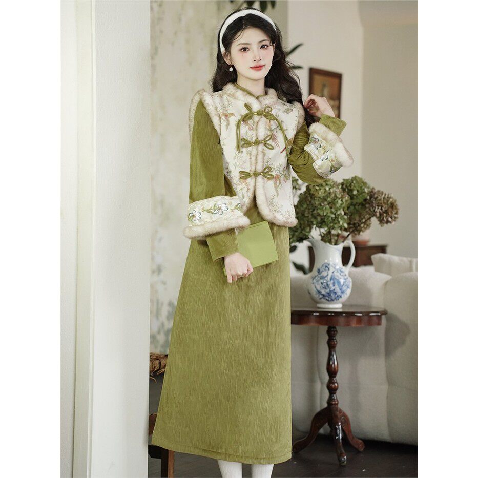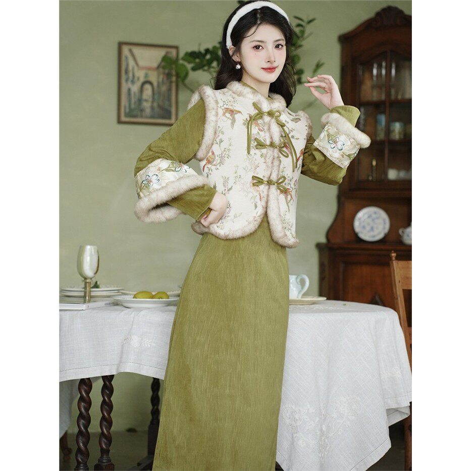 新中式轻国风马甲旗袍棉服高级感温柔风连衣裙两件女装秋冬款套装