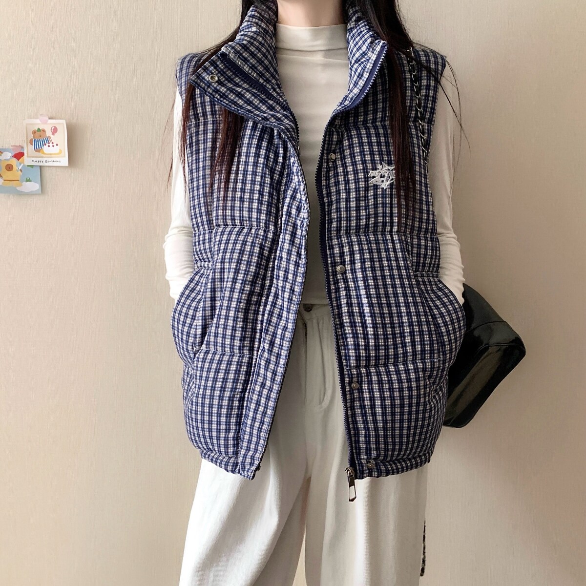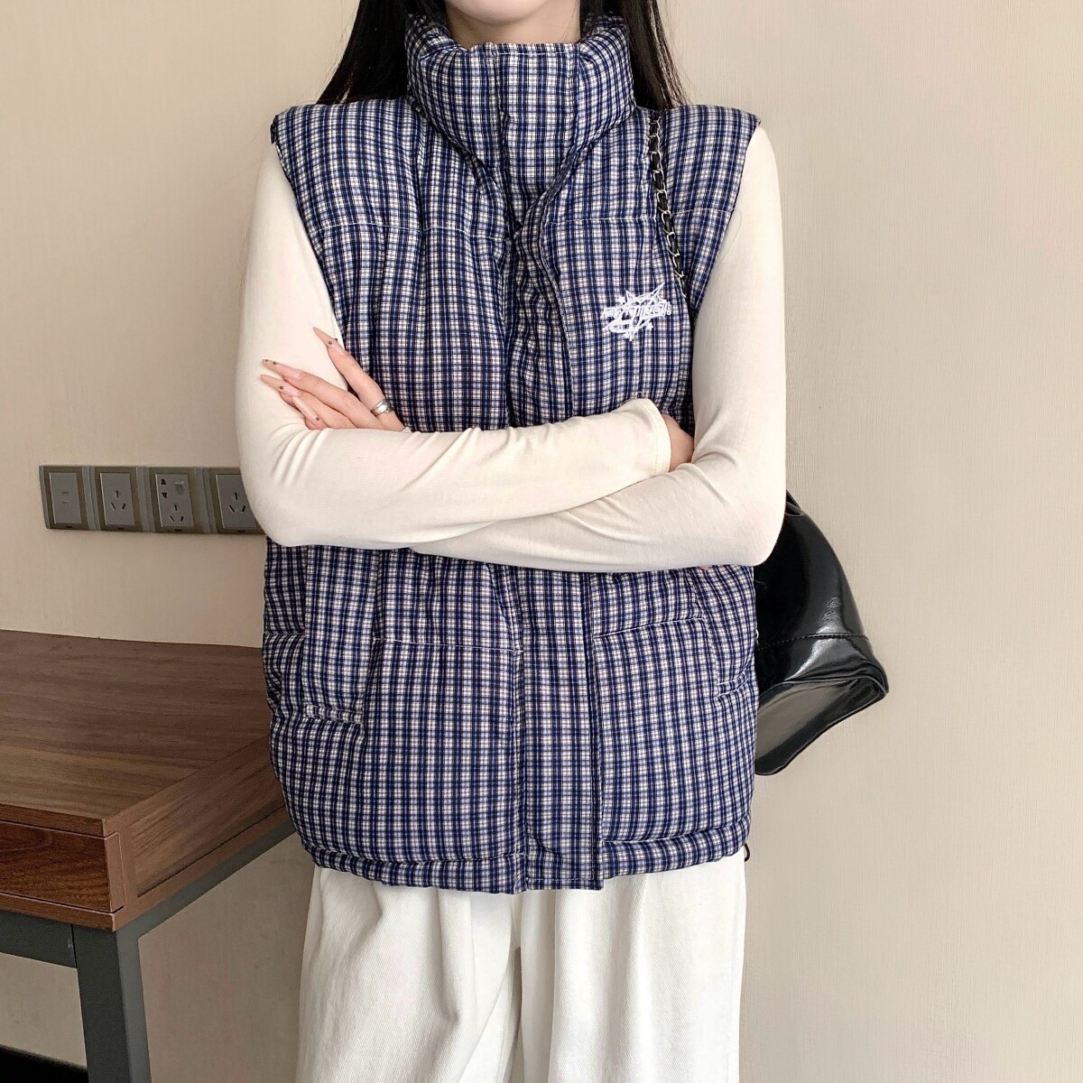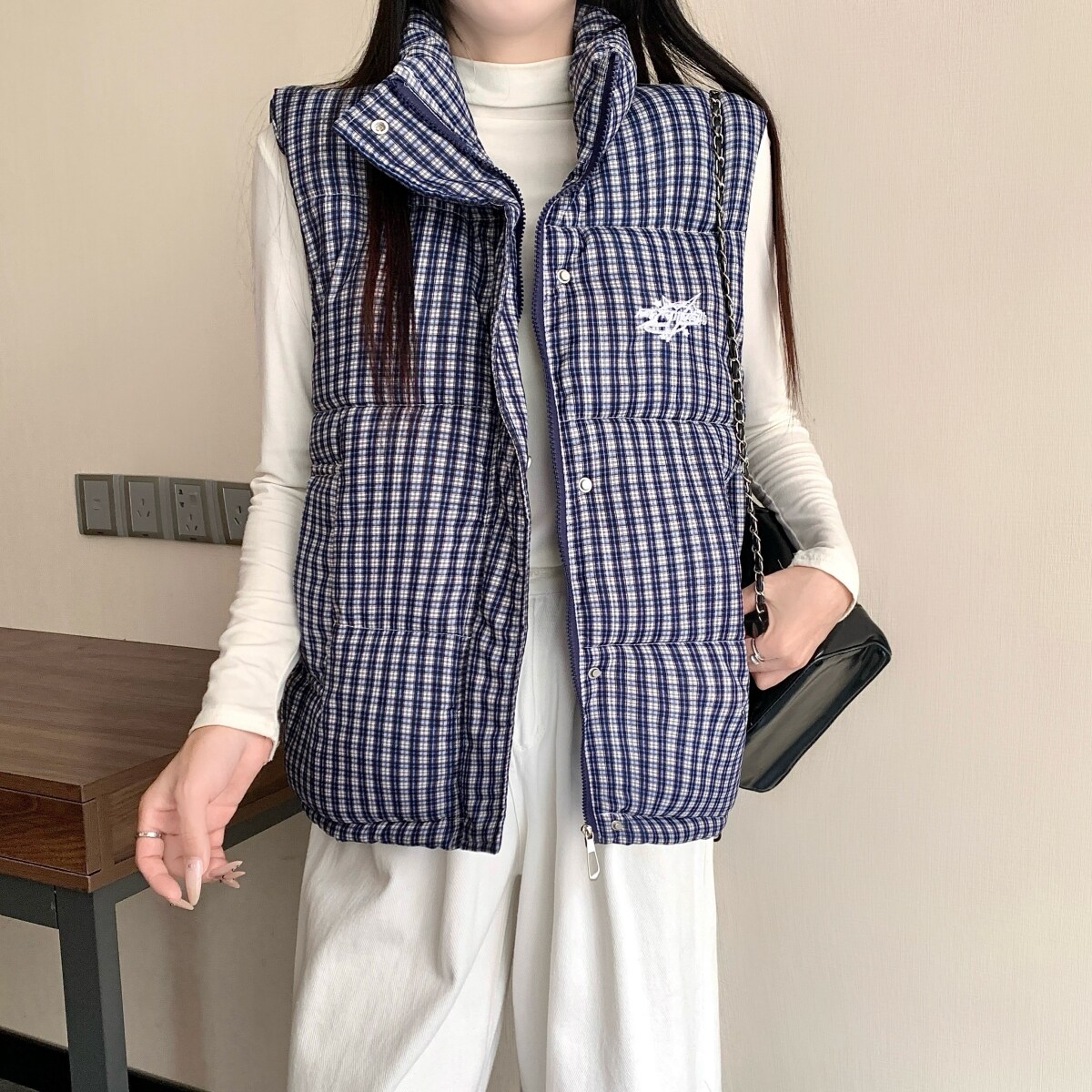 超好看 胖mm大码刺绣格子棉服马甲女秋冬百搭保暖无袖背心外套602