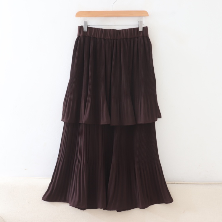 C11029日单新款客供料松紧高腰显瘦细百褶A字裙女气质层次半身裙