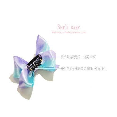 shesbaby韩国婴幼儿童时尚撞色蝴蝶结边夹布布同款发饰发夹胎毛夹