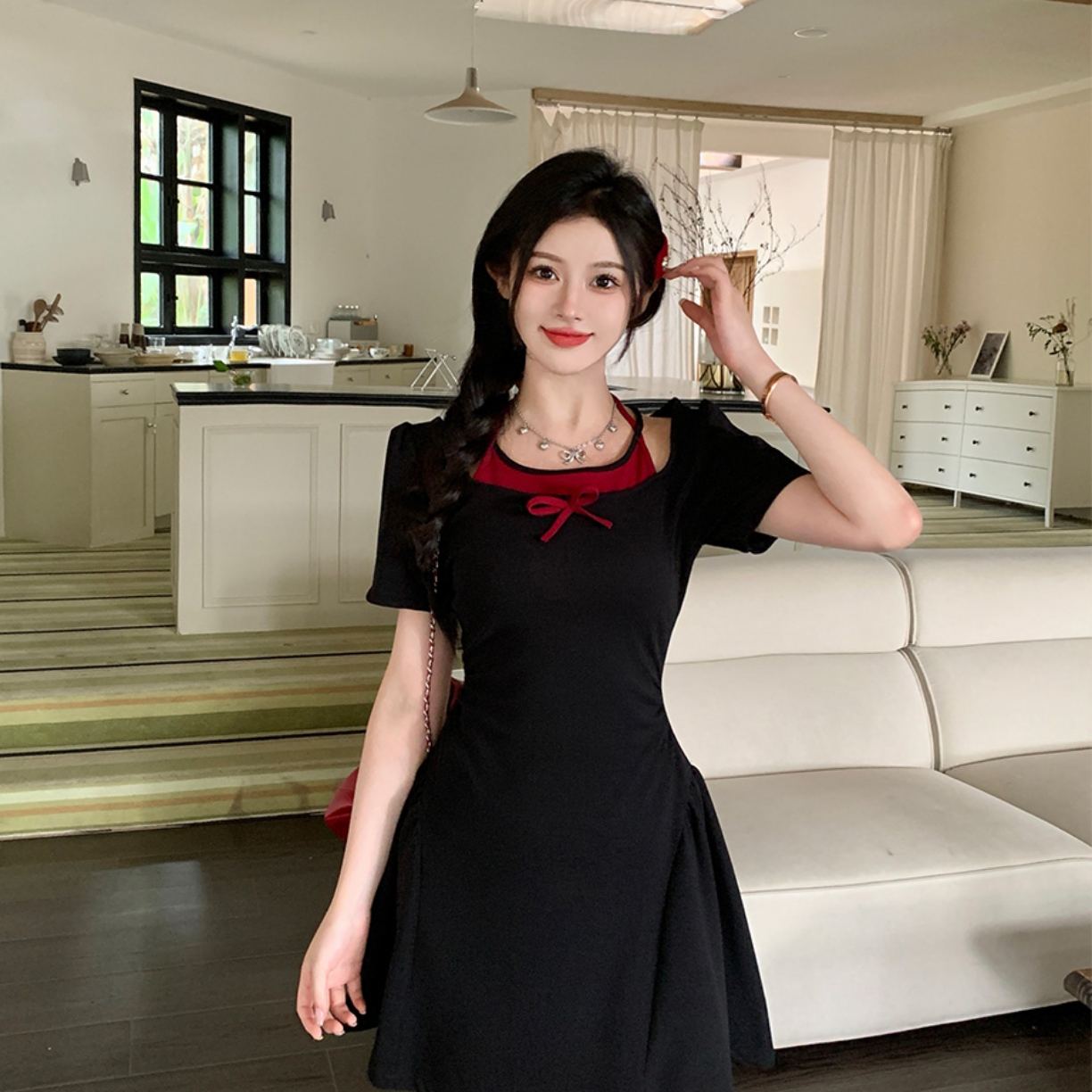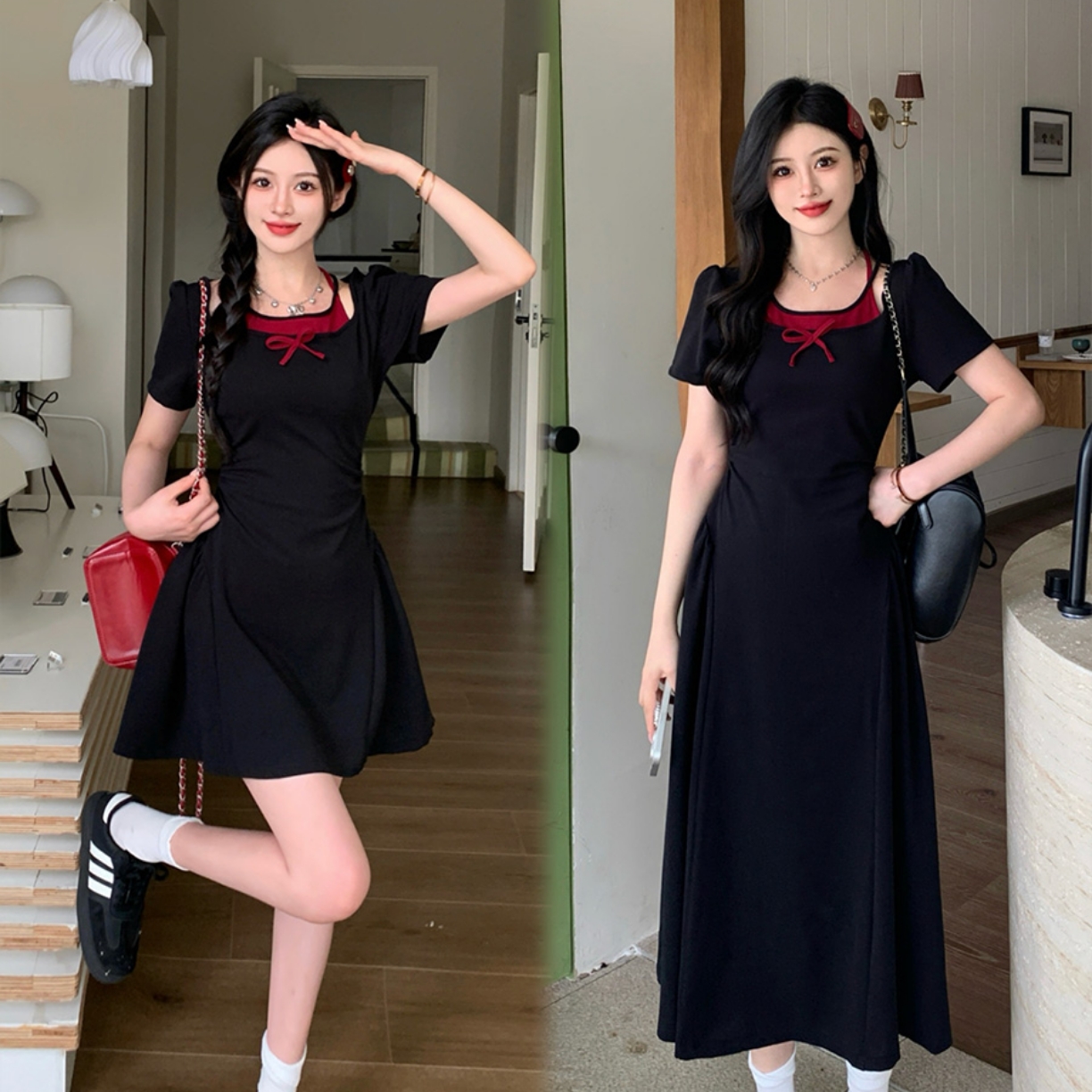 实拍~大码女装优雅迷人夏季收腰乱麻拼接蝴蝶结减龄连衣裙女胖mm