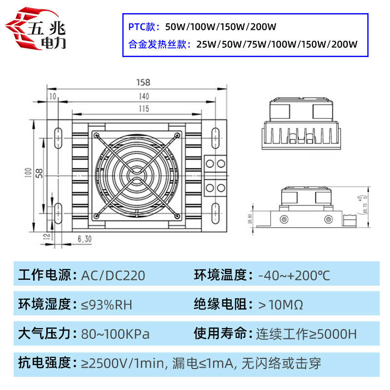 PTC防止结冰风扇铝合金加热器风机加热器DJR JRD-F加热板柜内保温