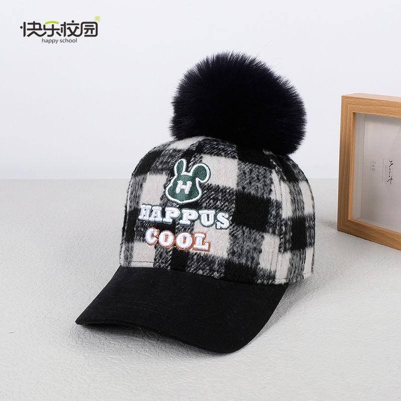 快乐校园中大童鸭舌帽秋冬款毛呢儿童帽子男女宝宝棒球帽防寒遮阳