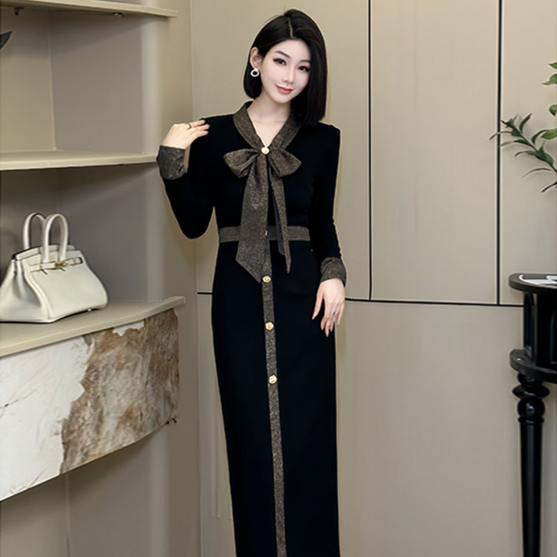 气质名媛高端女神范裙子2025春法式小香风打底连衣裙女D0047