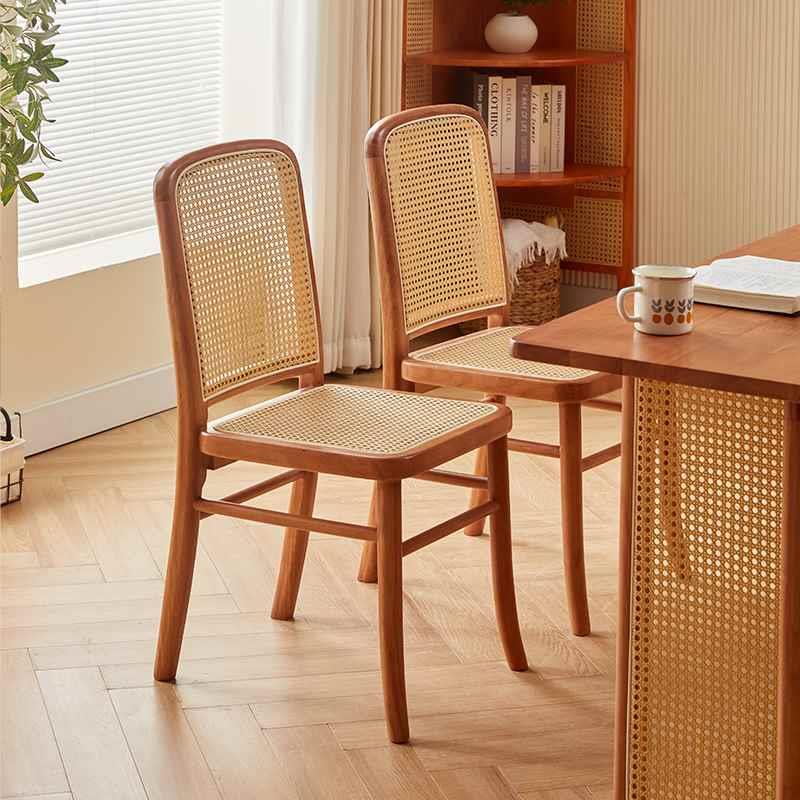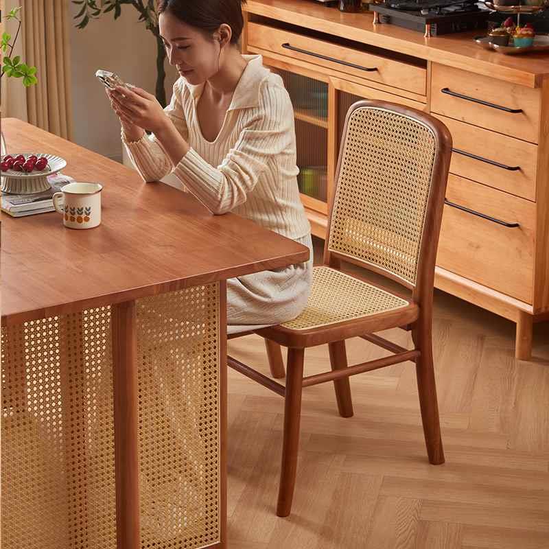 实木餐椅藤编原木家用复古餐厅中古靠背酒店北欧设计师椅餐桌