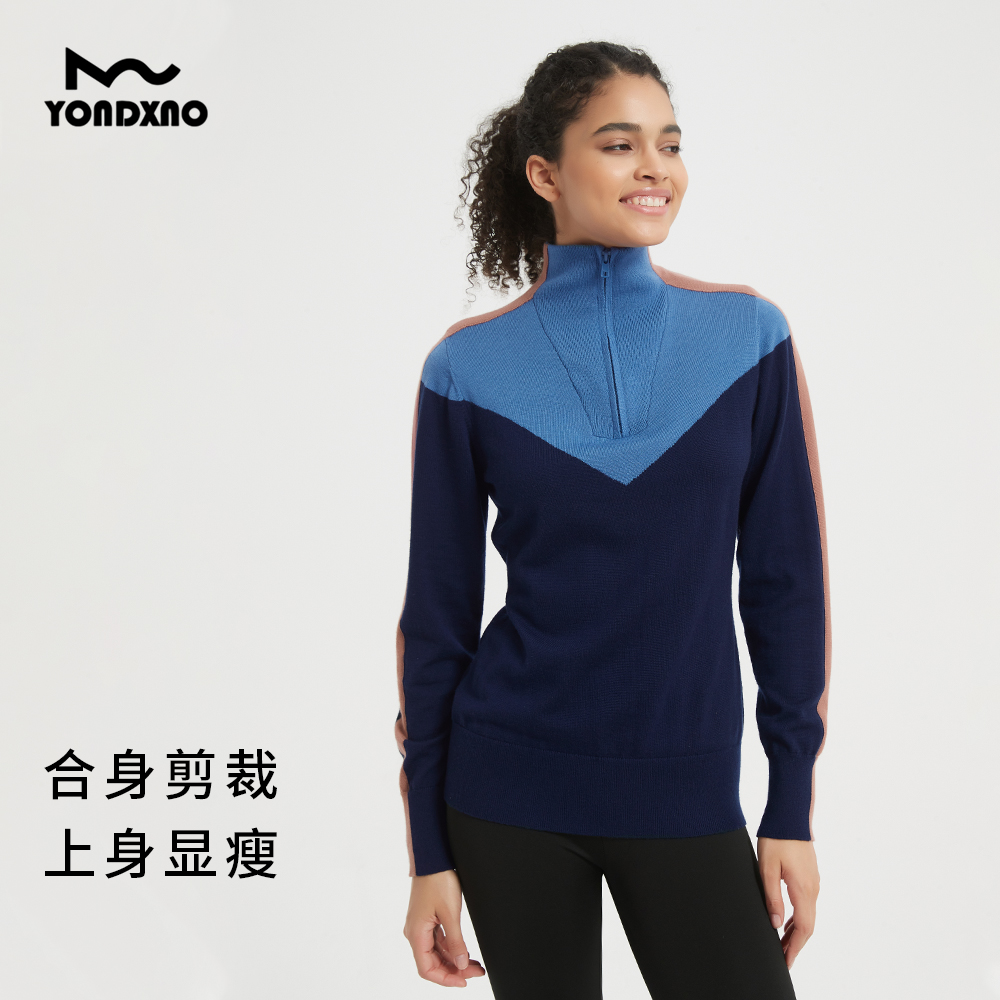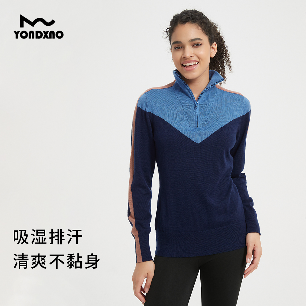 羊小诺美利奴速干衣女户外徒步滑雪长袖美丽诺半拉链打底T35