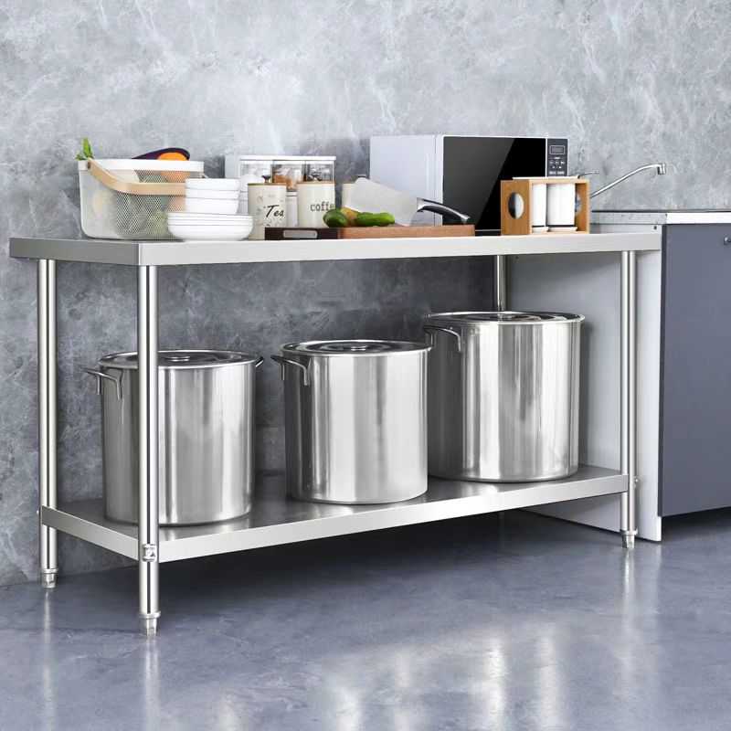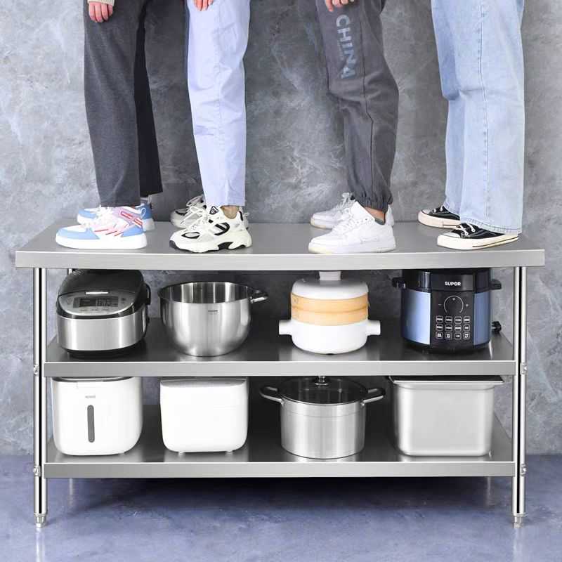 加厚双层不锈钢工作台厨房专用切菜剁骨饭店操作台商用打荷打包台