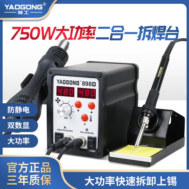姚工858D热风枪拆焊台898D二合一热风枪电烙铁手机电子维修焊接用