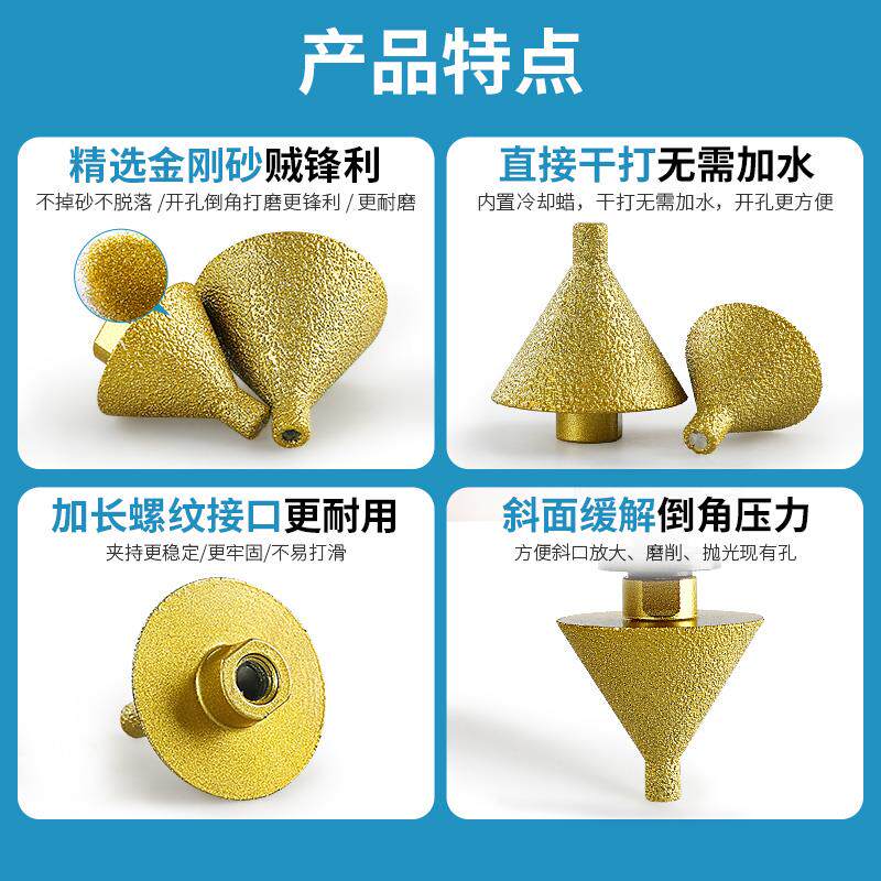 金刚石开孔倒角器锥形新款磨头瓷砖大理石英石打孔扩孔角磨机钻头