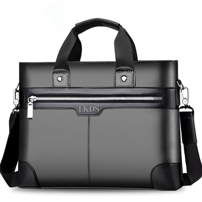 真皮质感男士商务手提包大容量男包单肩斜挎包电脑包公文包会新款