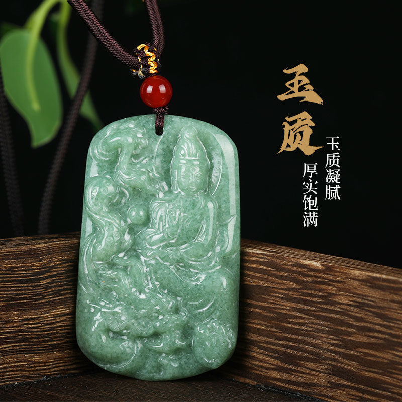 唐今玉天然a货翡翠豆种骑龙观音玉石吊坠挂件玉佩男士项链女款吊