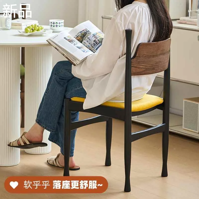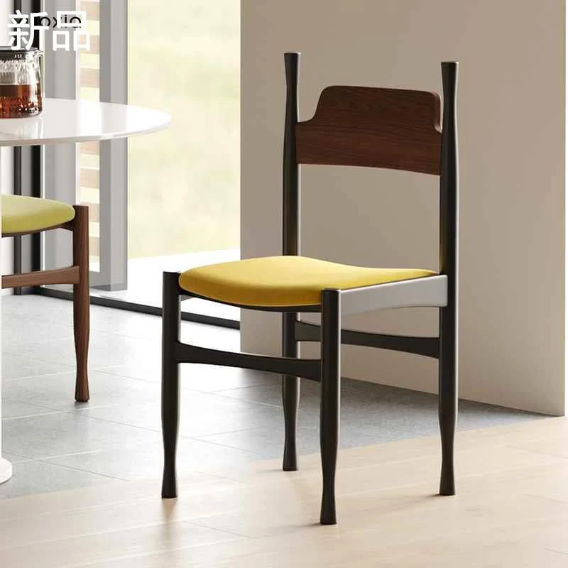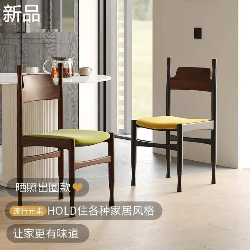 左下骑士椅法式实木餐椅中古简约家用靠背椅子网红设计师软包新品