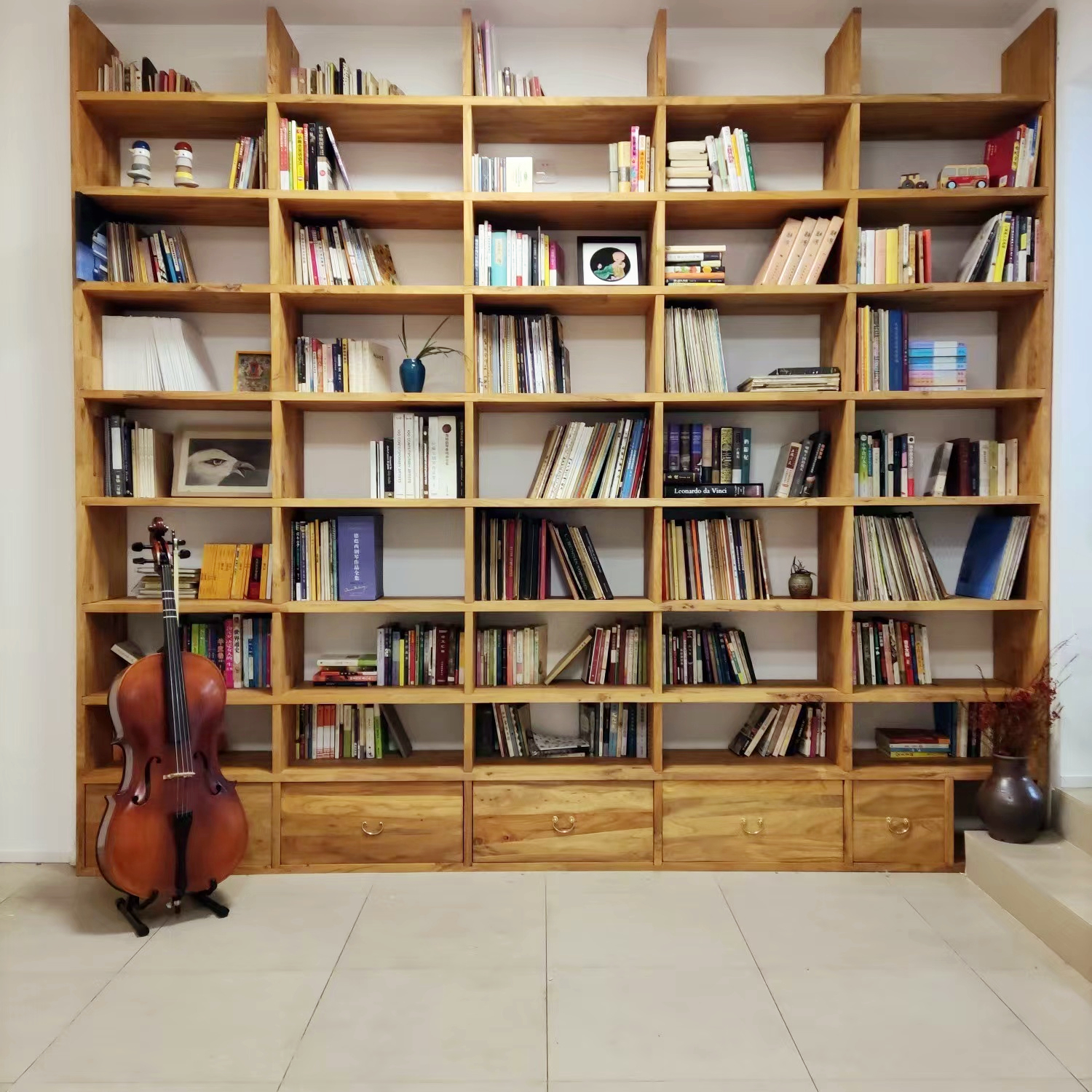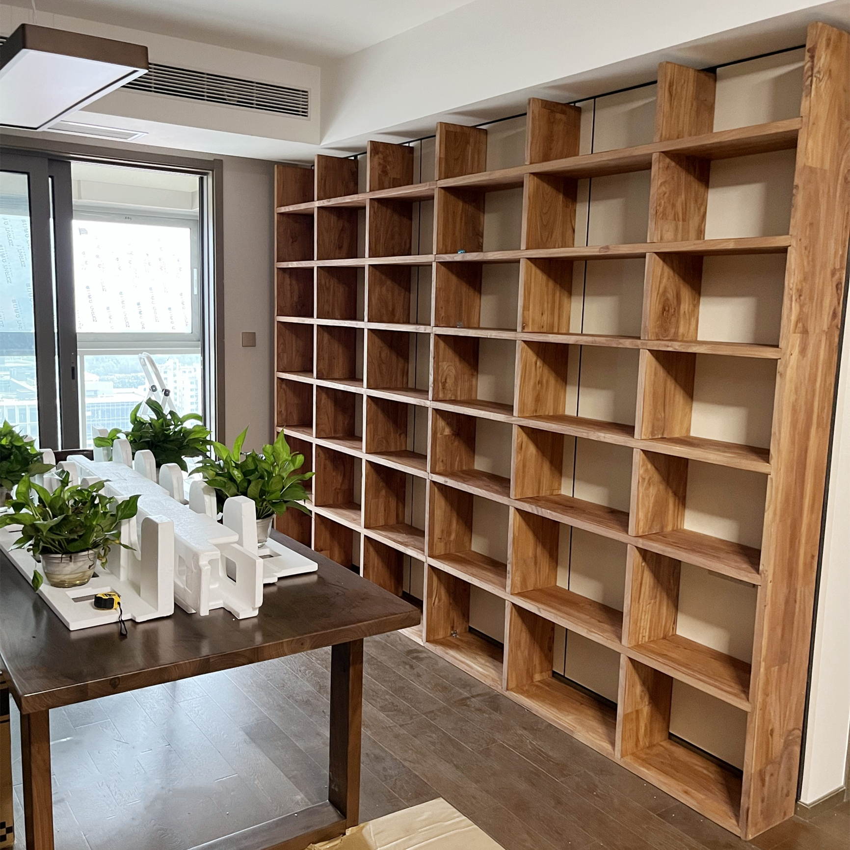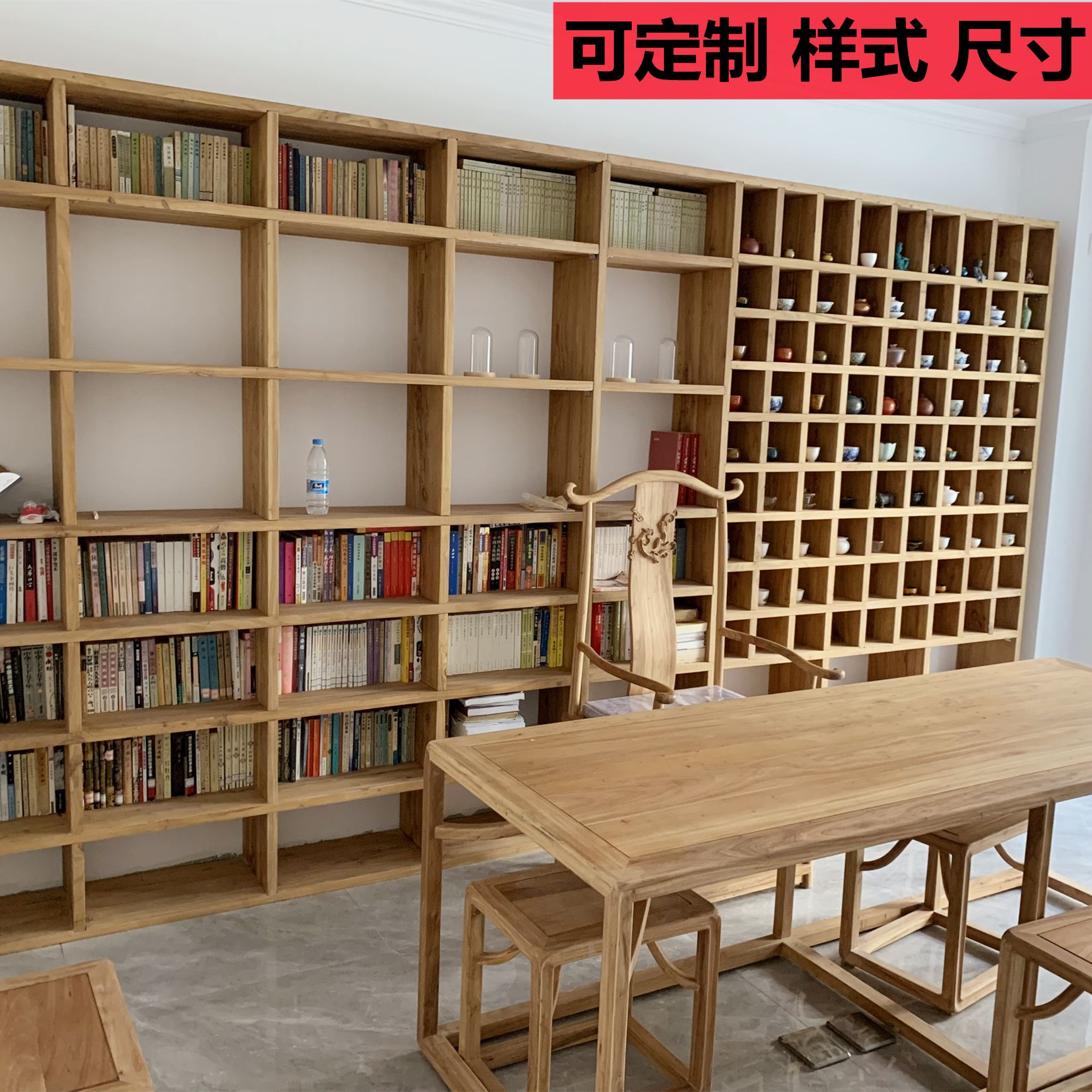 定制老榆木书架 落地书架 隔断置物 实木书柜格子架 定做满墙书架