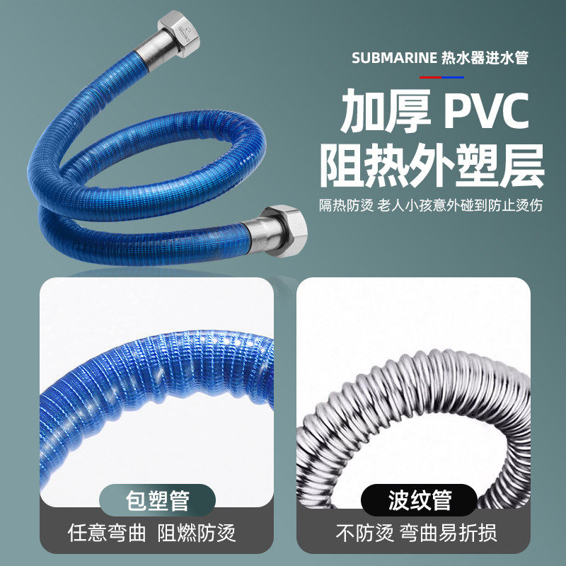 潜水艇304不锈钢波纹管金属水管高压软管冷热水器连接管水龙头4分