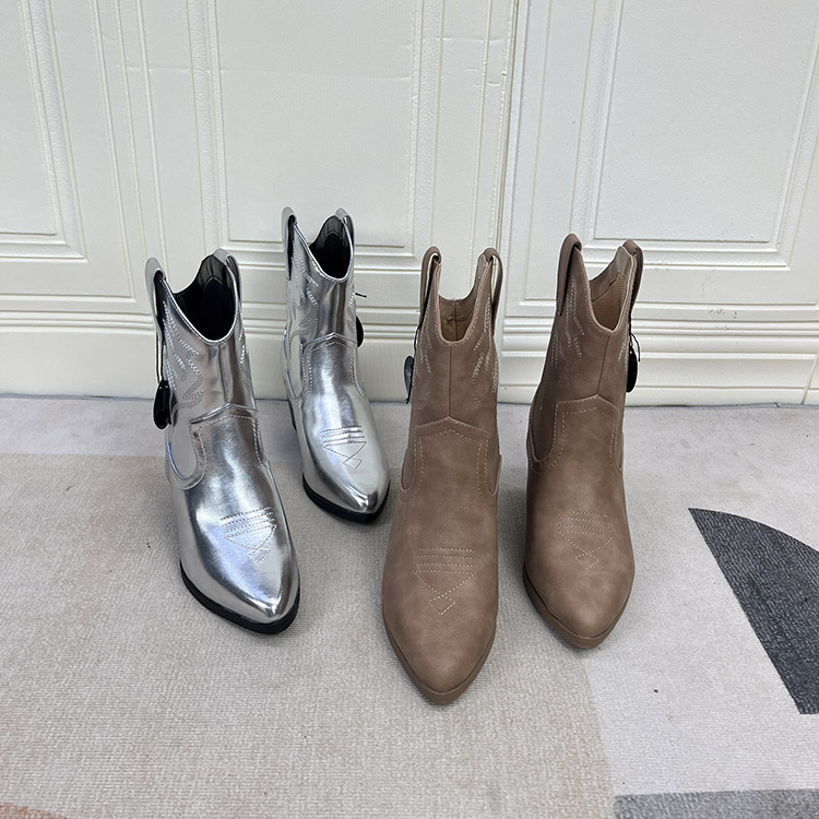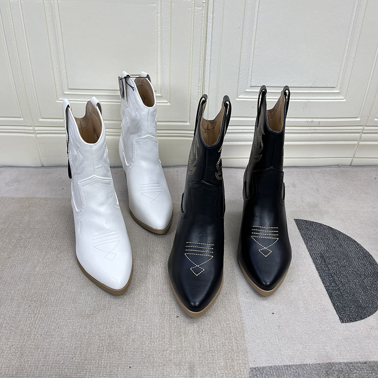 外贸原单时尚马丁靴套筒百搭切尔西部牛仔刺绣尖头粗跟短靴女靴