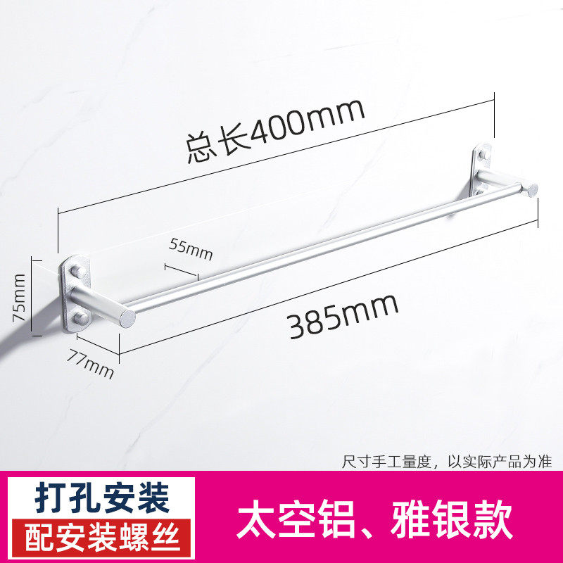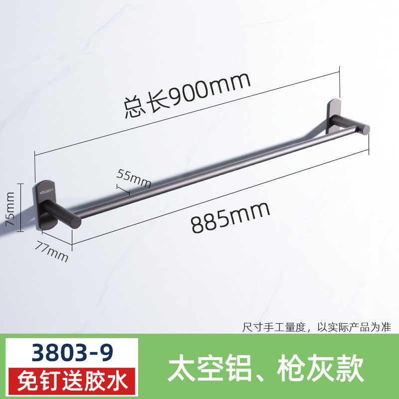 毛巾杆单杆免打孔毛巾架枪灰色浴室卫生间置物架厨房挂杆浴巾新款
