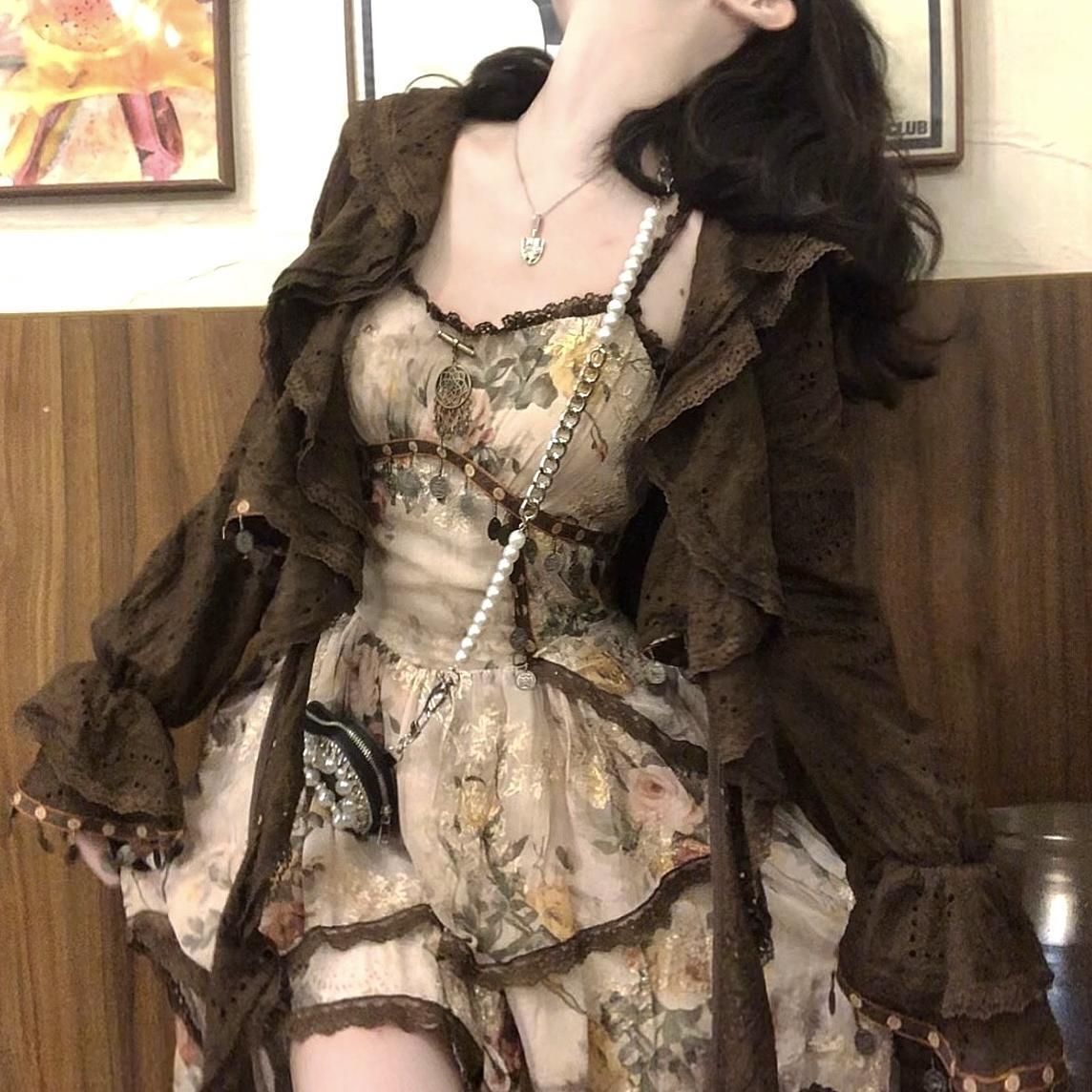 【ALITTLE 乱糟糟】“旷野玫瑰”波西米亚风不规则吊带裙+开衫