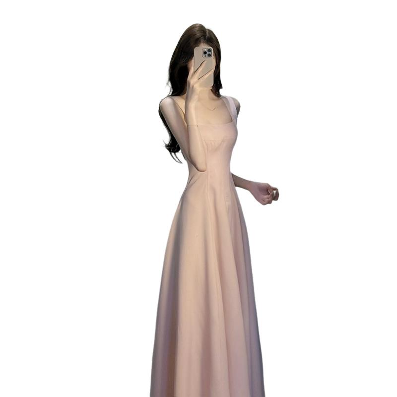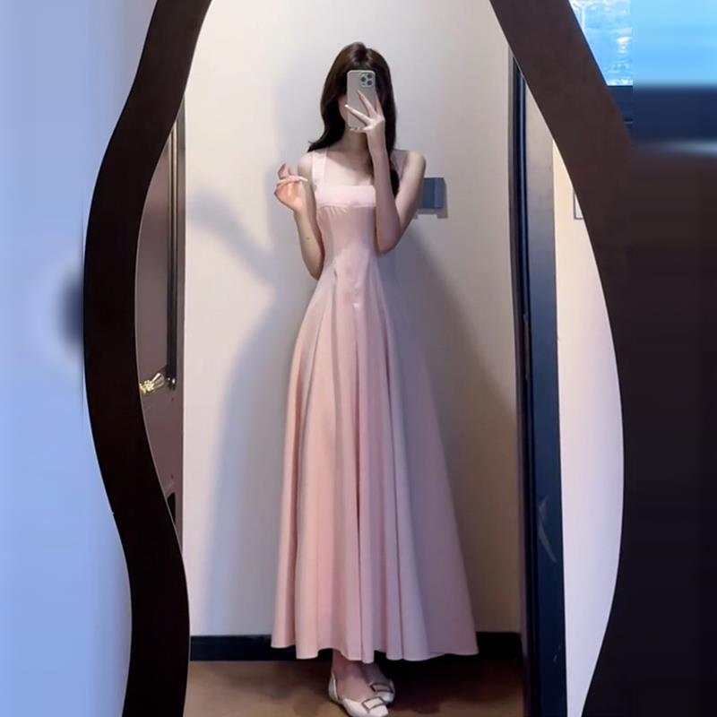 法式高级感粉色吊带连衣裙子女装2025夏季新款度假风气质收腰长裙