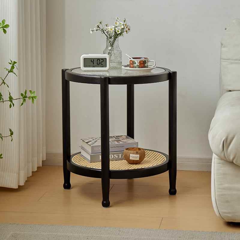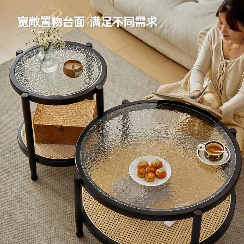 北欧实木圆形日式玻璃茶几客厅家用小户型简约边几藤编简约新品