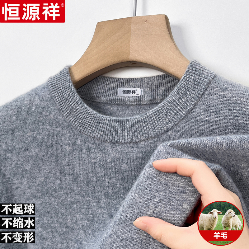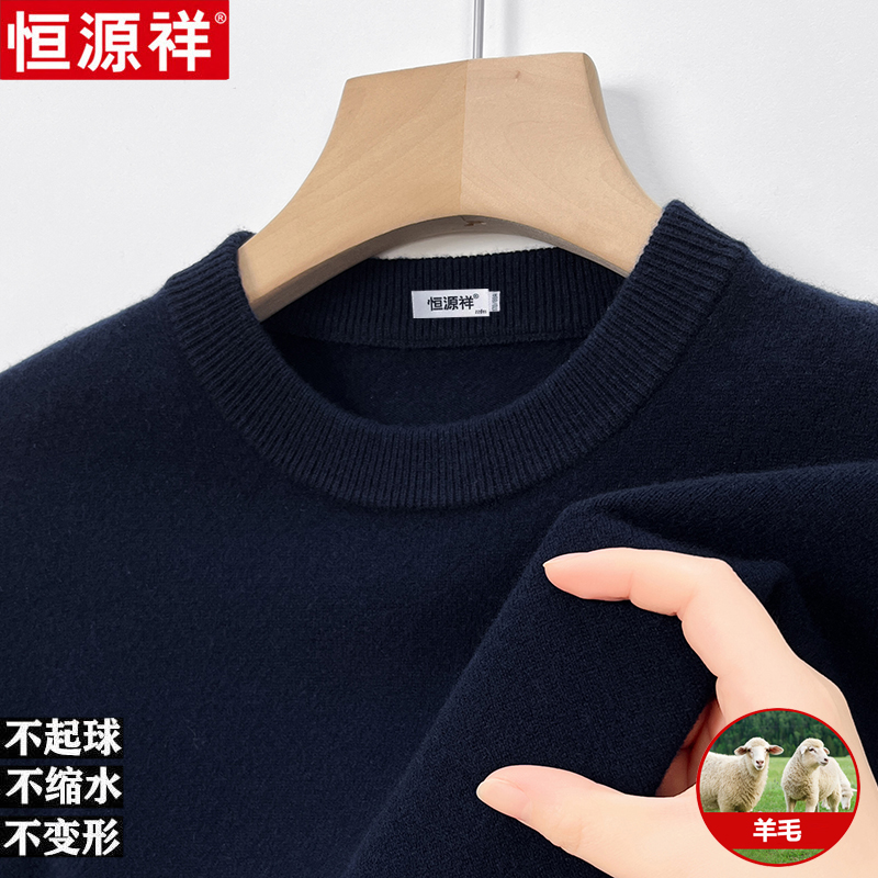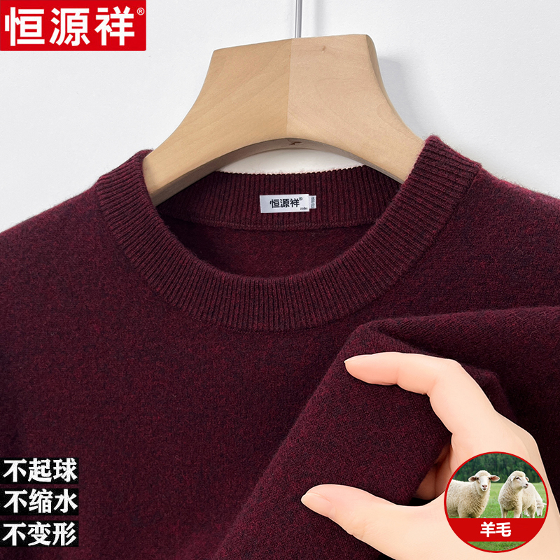 恒源祥羊毛衫男100纯羊毛圆领毛衣秋冬季保暖针织打底羊绒衫毛衣