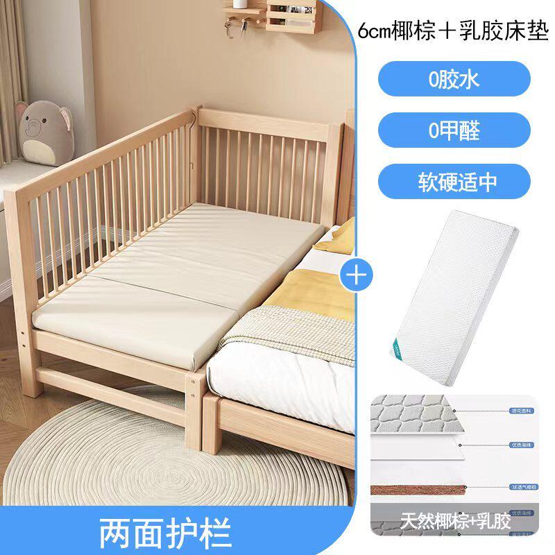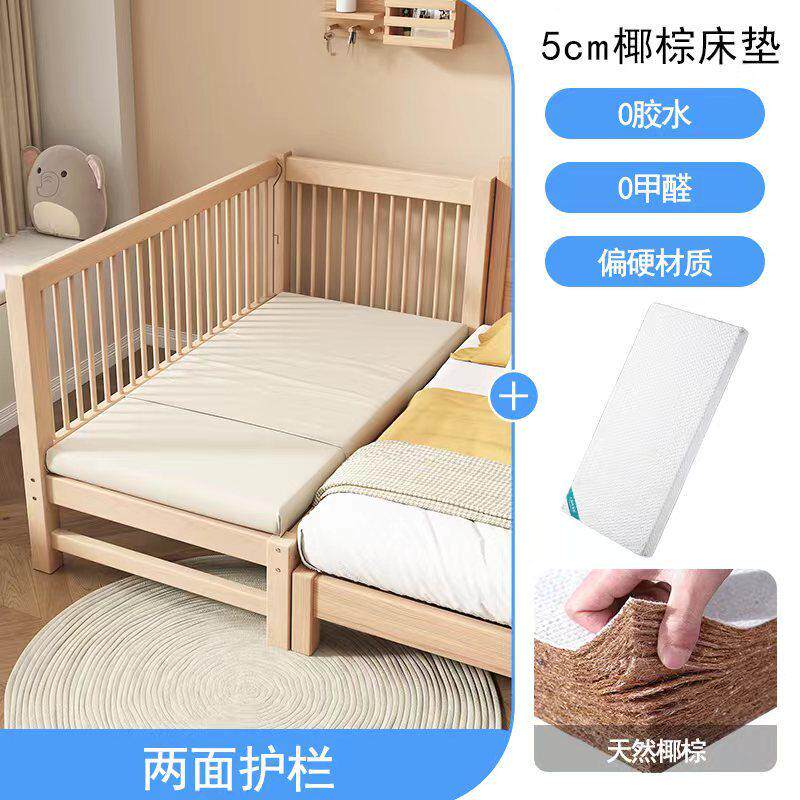 实木榉木儿童床拼接大床护栏可调节加宽床男孩女孩宝宝公主加新款