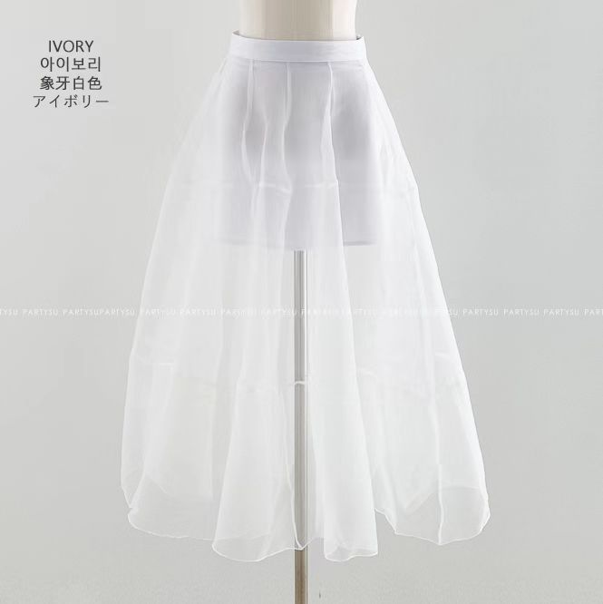 法式气质设计感高腰显瘦小众黑丝搭配半透外搭欧根纱布料裙半身