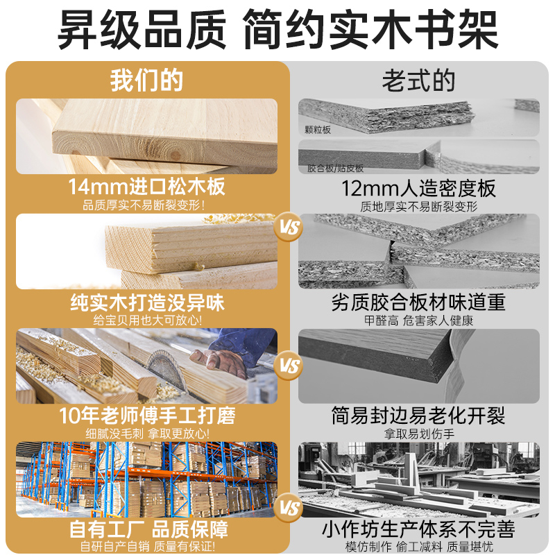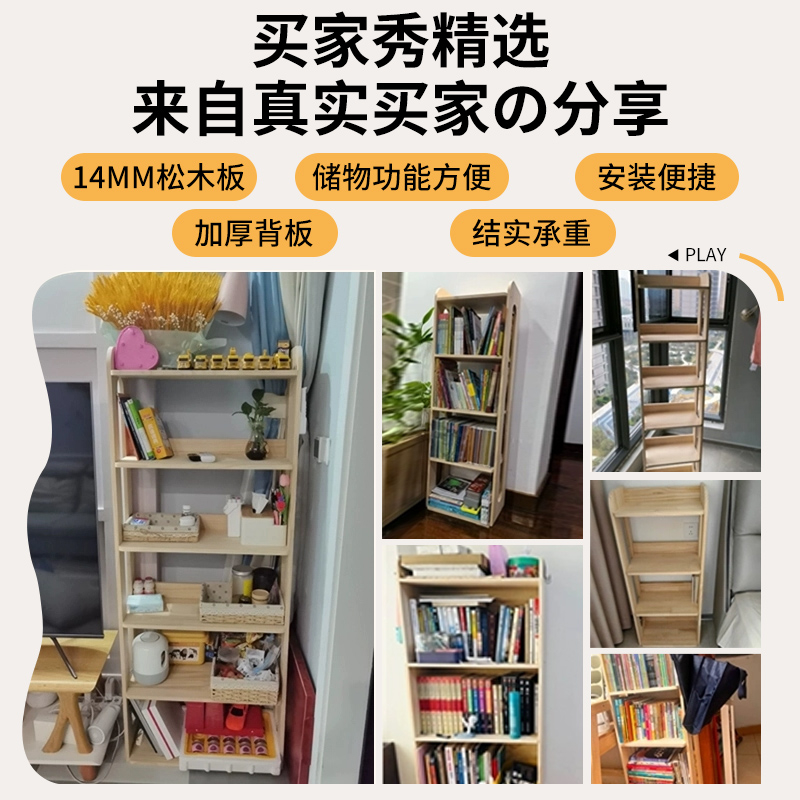 实木书架落地置物架一体靠墙储物柜学生家用墙角不占地方简易书柜