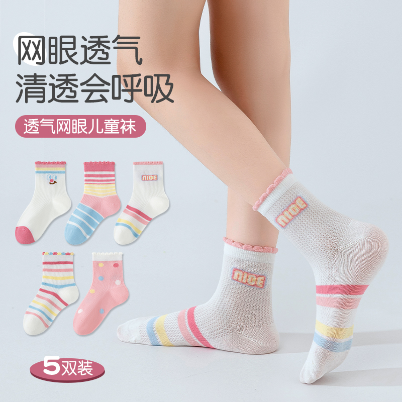无骨抗起球7A抗菌春夏儿童袜子夏季网眼薄款透气女童卡通彩虹棉袜