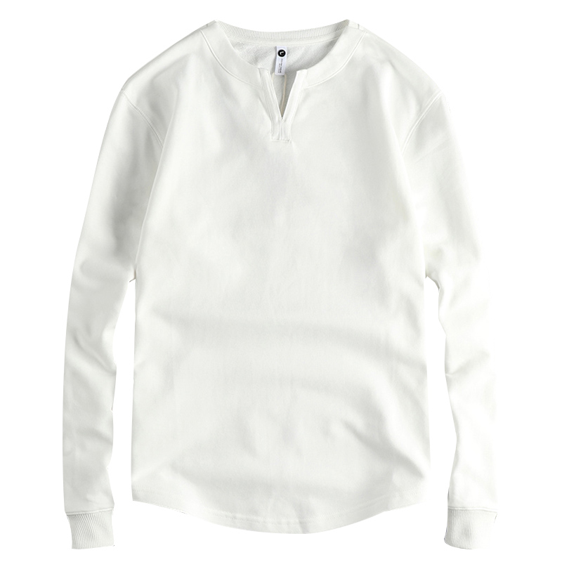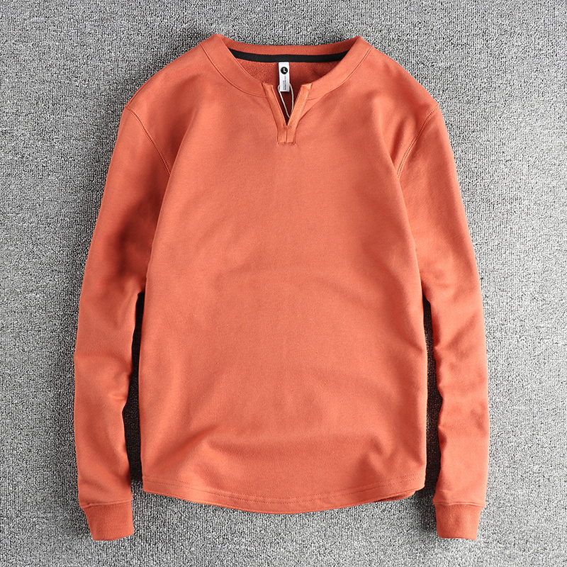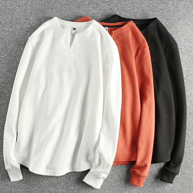 代购潮牌美式经典小V领潮流纯色卫衣男水洗纯棉面料百搭休闲长袖t