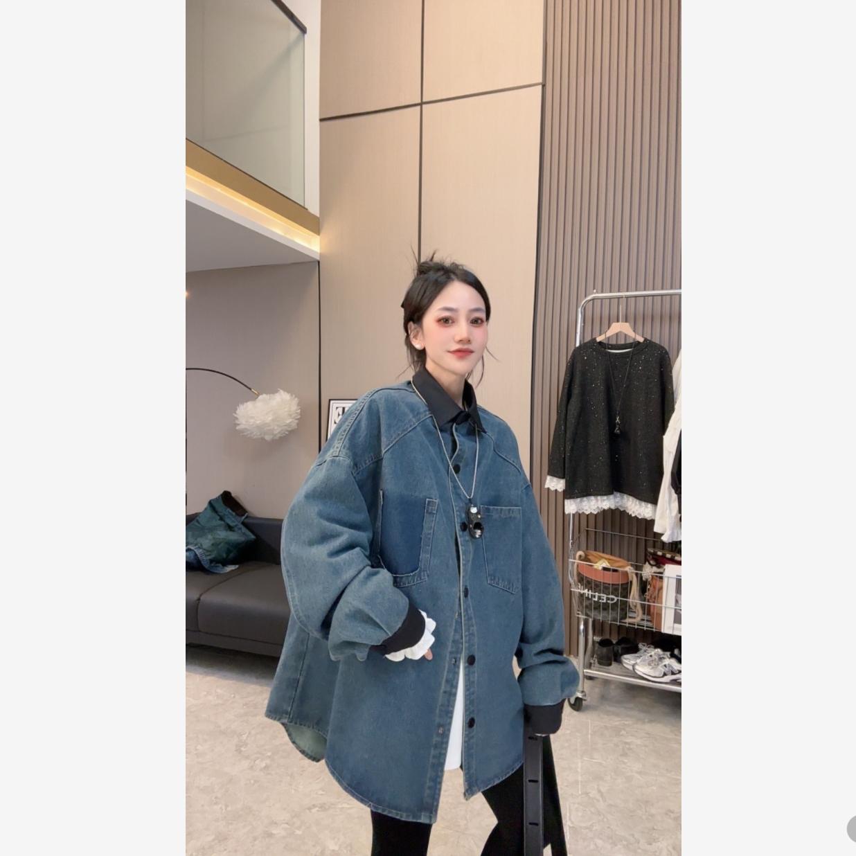 【撞色翻领】春上新~简约时尚阔版撞色领洗水宽松牛仔外套