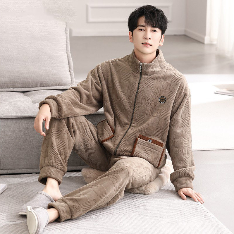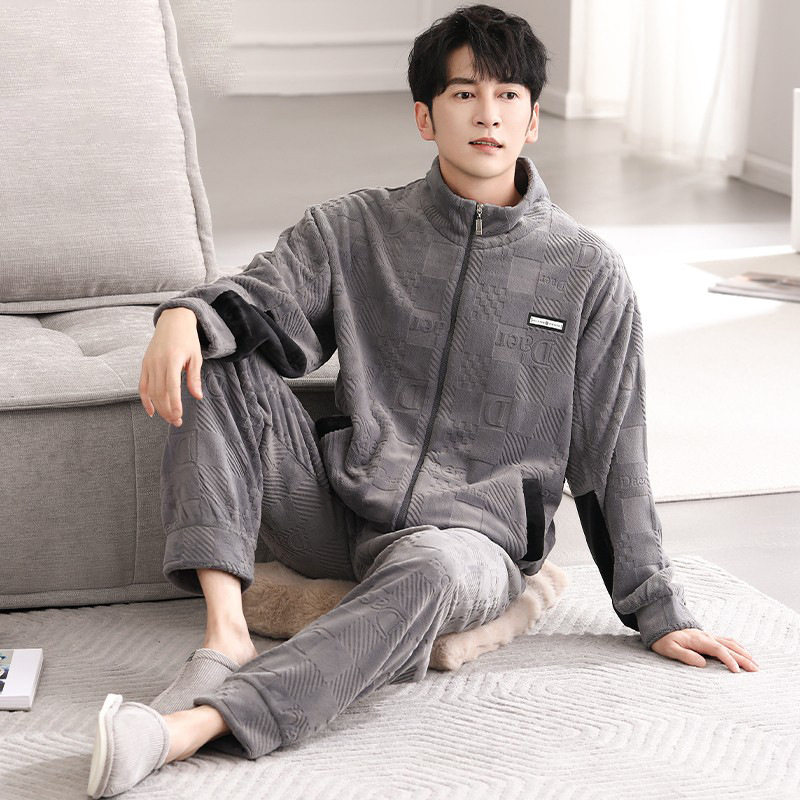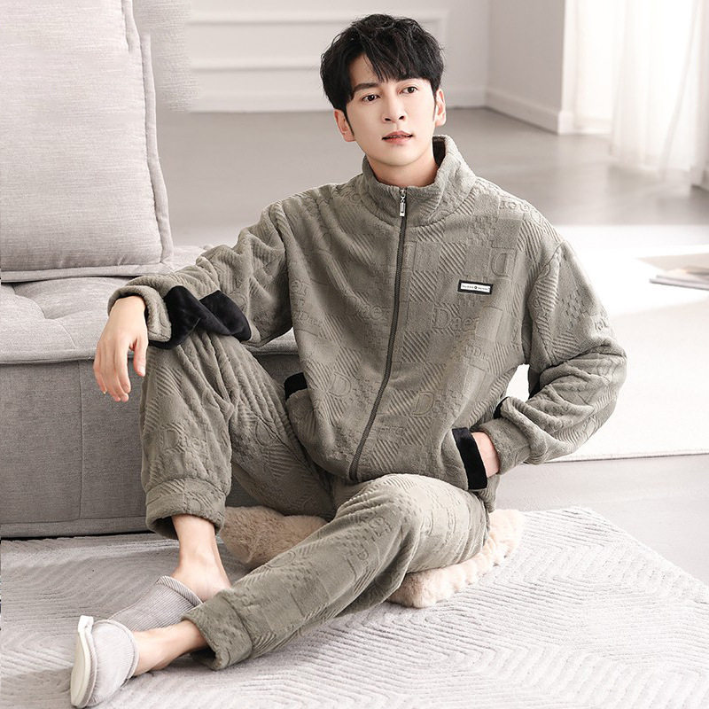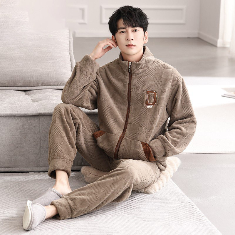 男士睡衣秋冬季珊瑚绒加厚加绒保暖法兰绒冬家居服可外穿