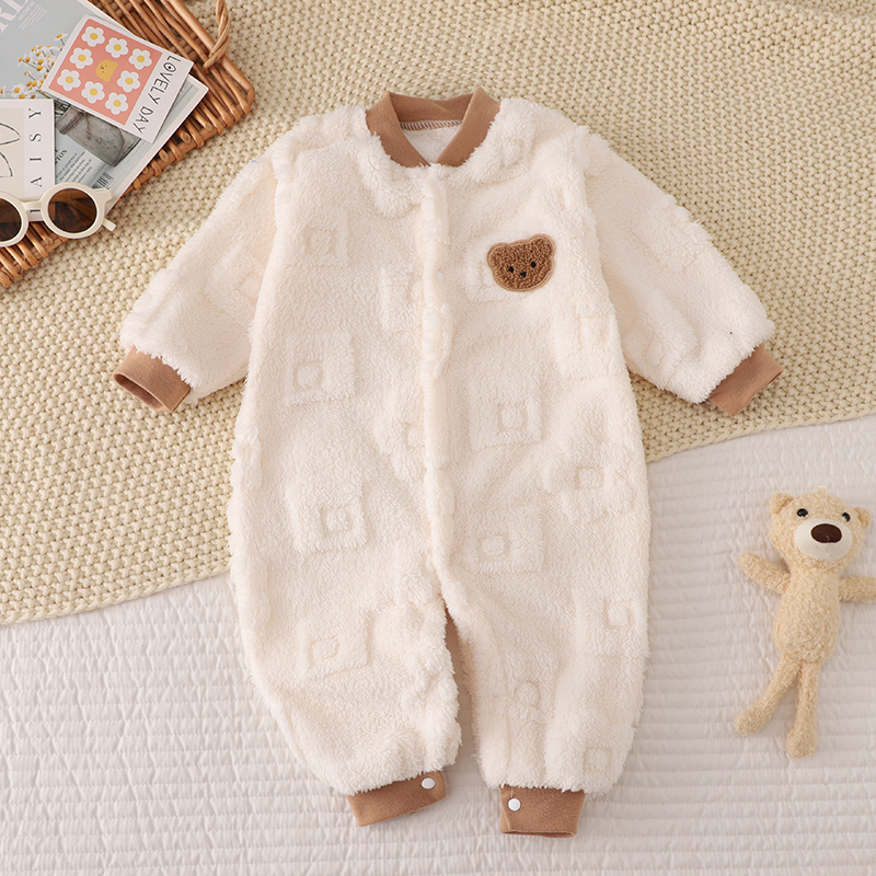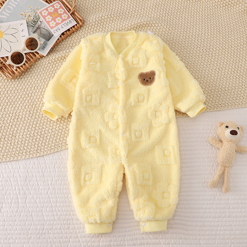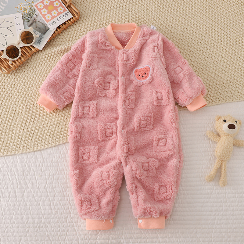 婴儿保暖连体衣宝宝哈衣秋冬加厚爬服男女按扣连身法兰绒睡衣
