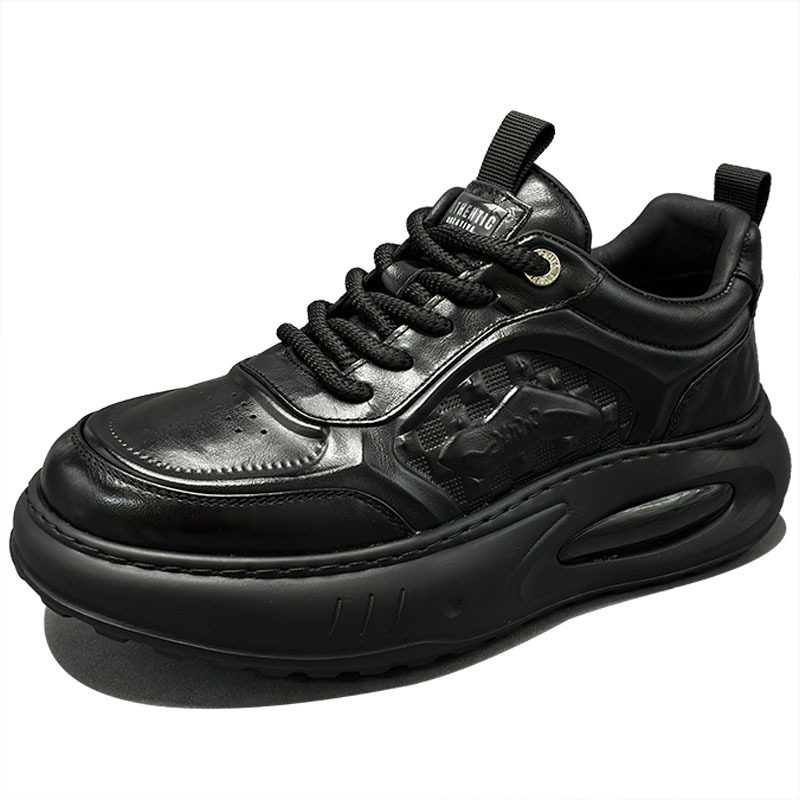 高档男士2025冬季新款男鞋厚底百搭休闲皮鞋真皮轻便气垫老爹鞋