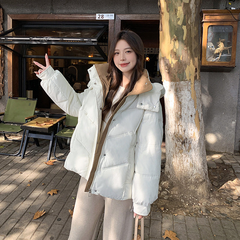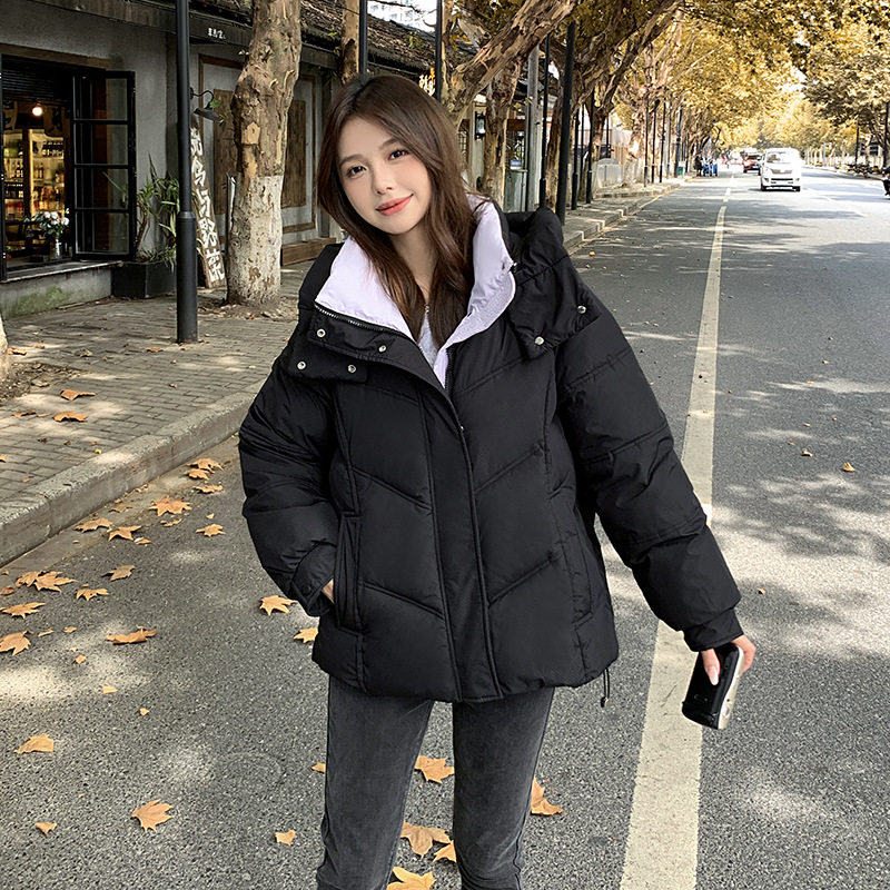 短款棉衣女小个子2024年新款冬季韩版连帽棉服情侣宽松面包服外套