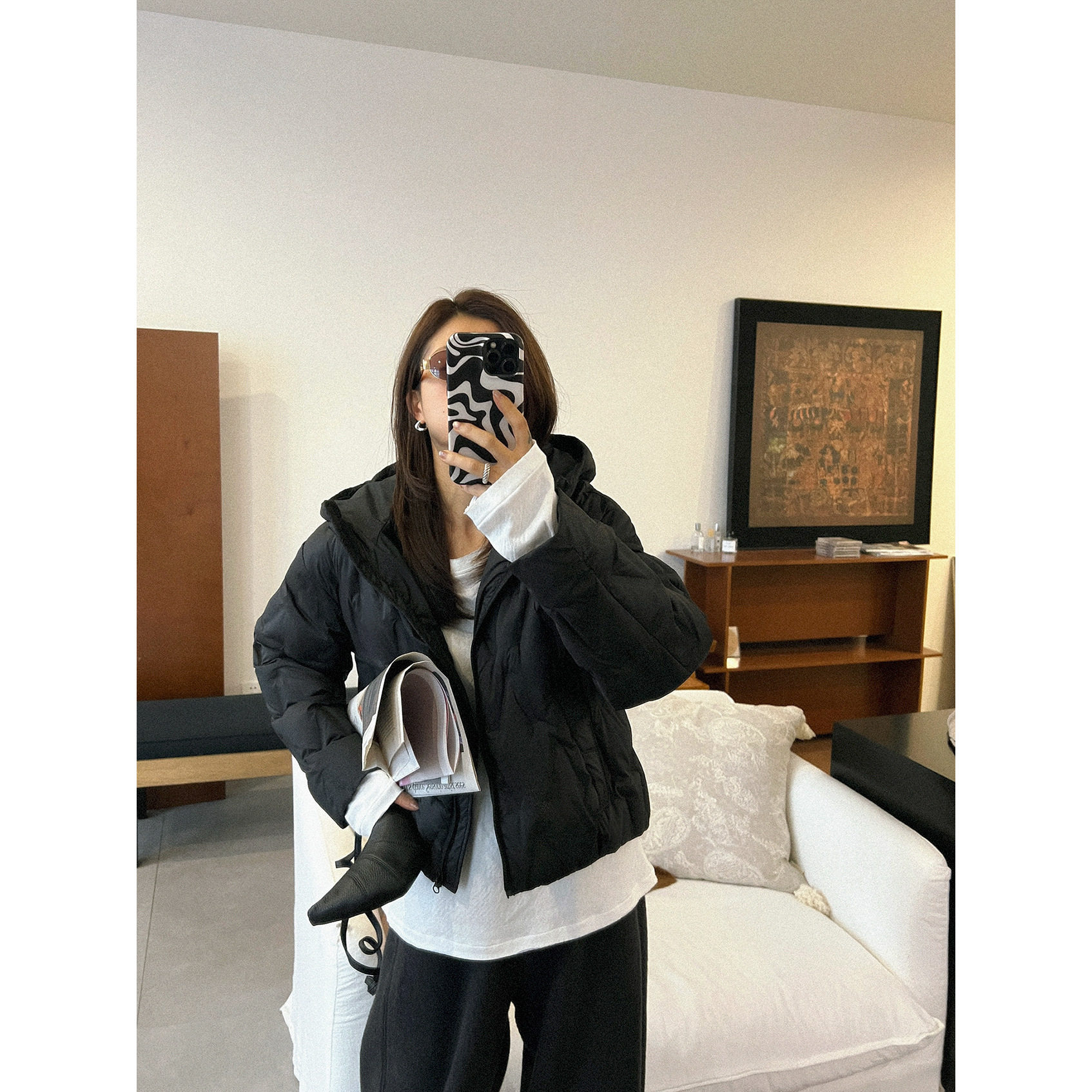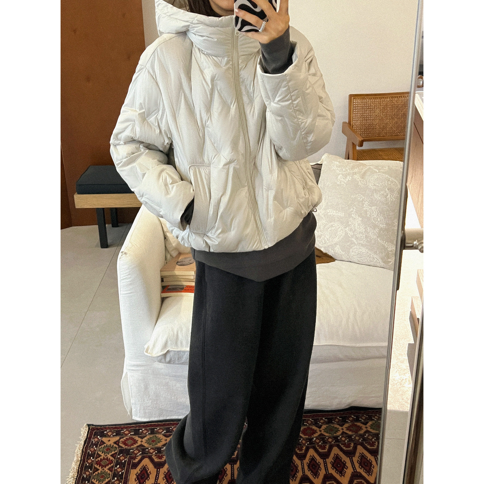 Tania 90白鸭绒简约压胶女士工艺白鸭绒长袖连帽25秋冬羽绒服外套