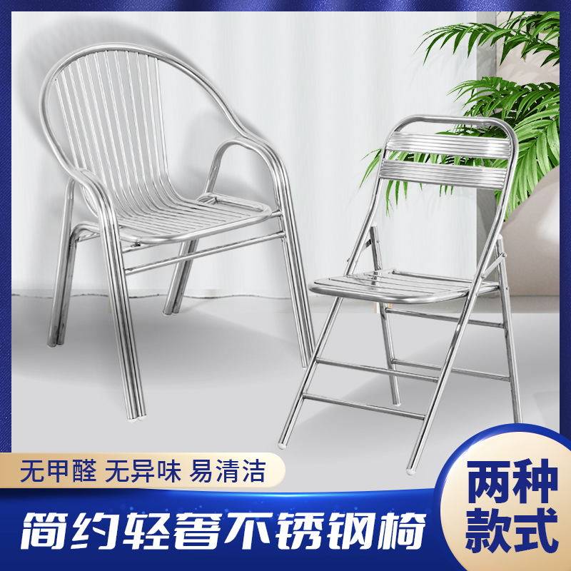 不锈钢折叠椅子304靠背椅子凳户外休闲阳台单人扶手网红工业风椅