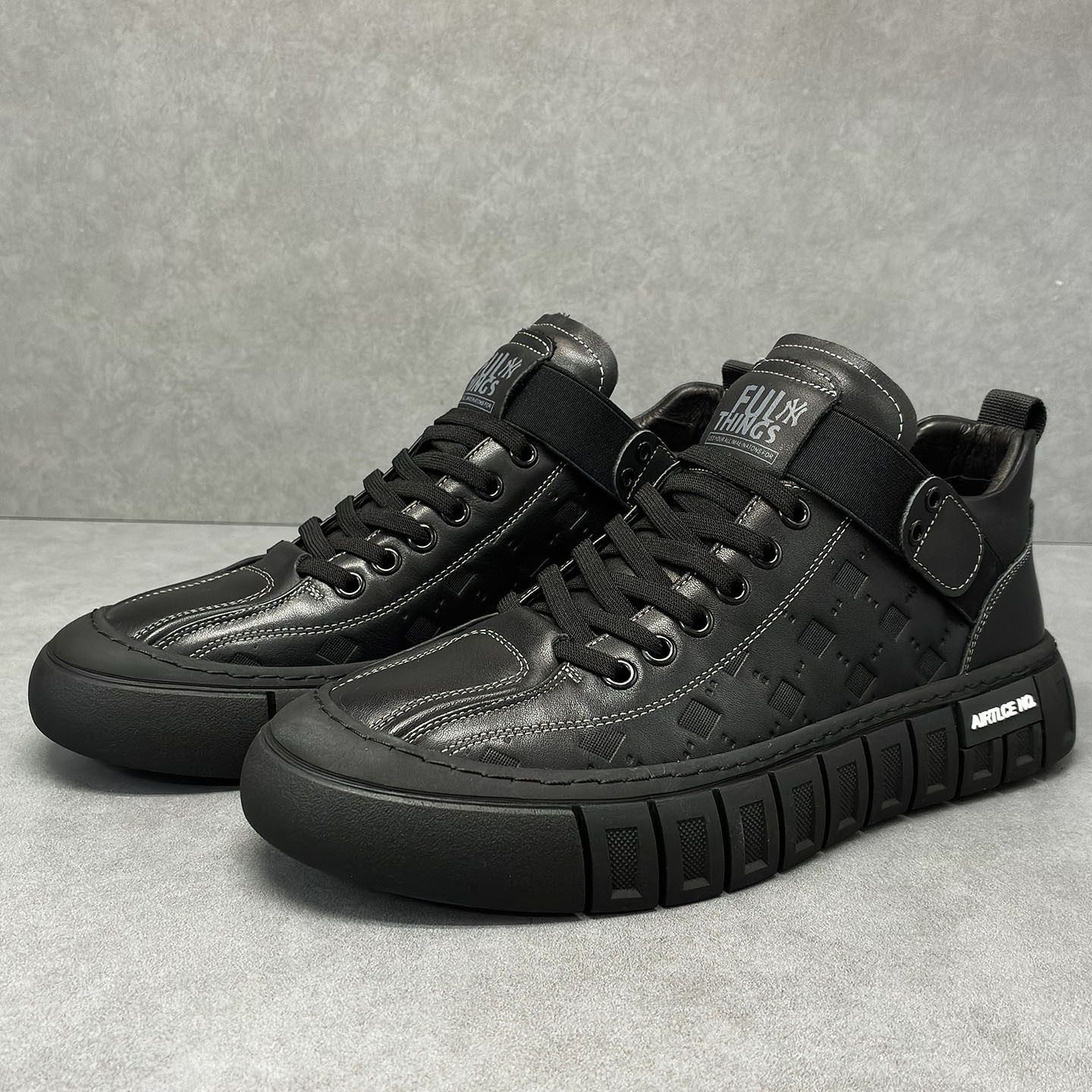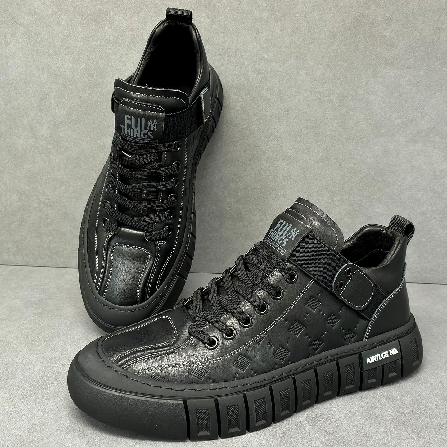 高档男士2025冬季新款真皮男鞋加绒休闲鞋马丁靴厚底板鞋高帮男鞋