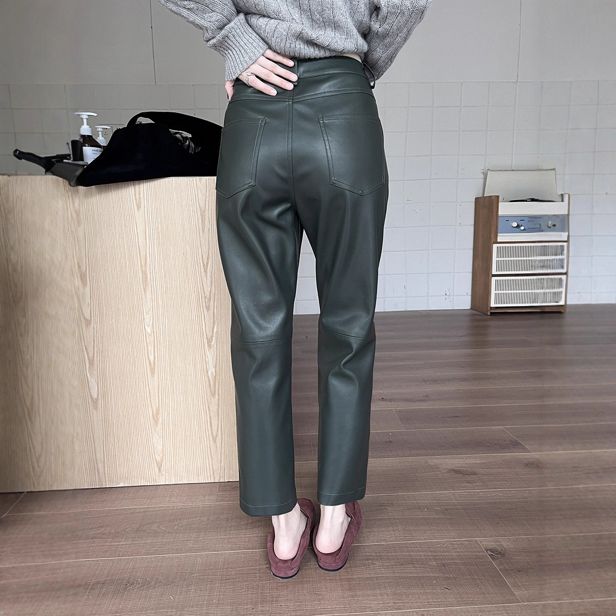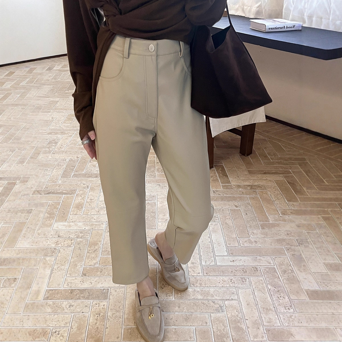 Tania S家秋季新款韩版淑女休闲裤九分百搭高腰烟管皮裤显瘦裤子