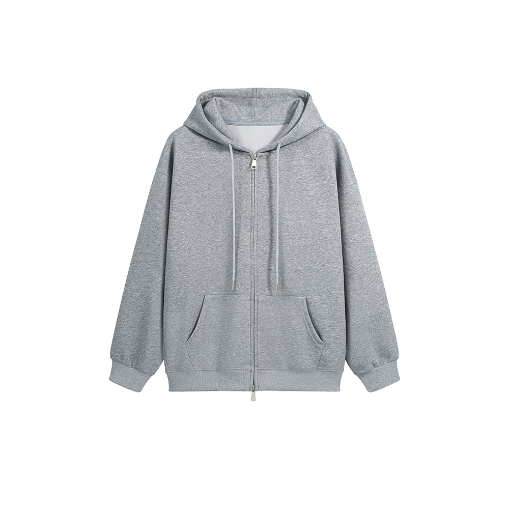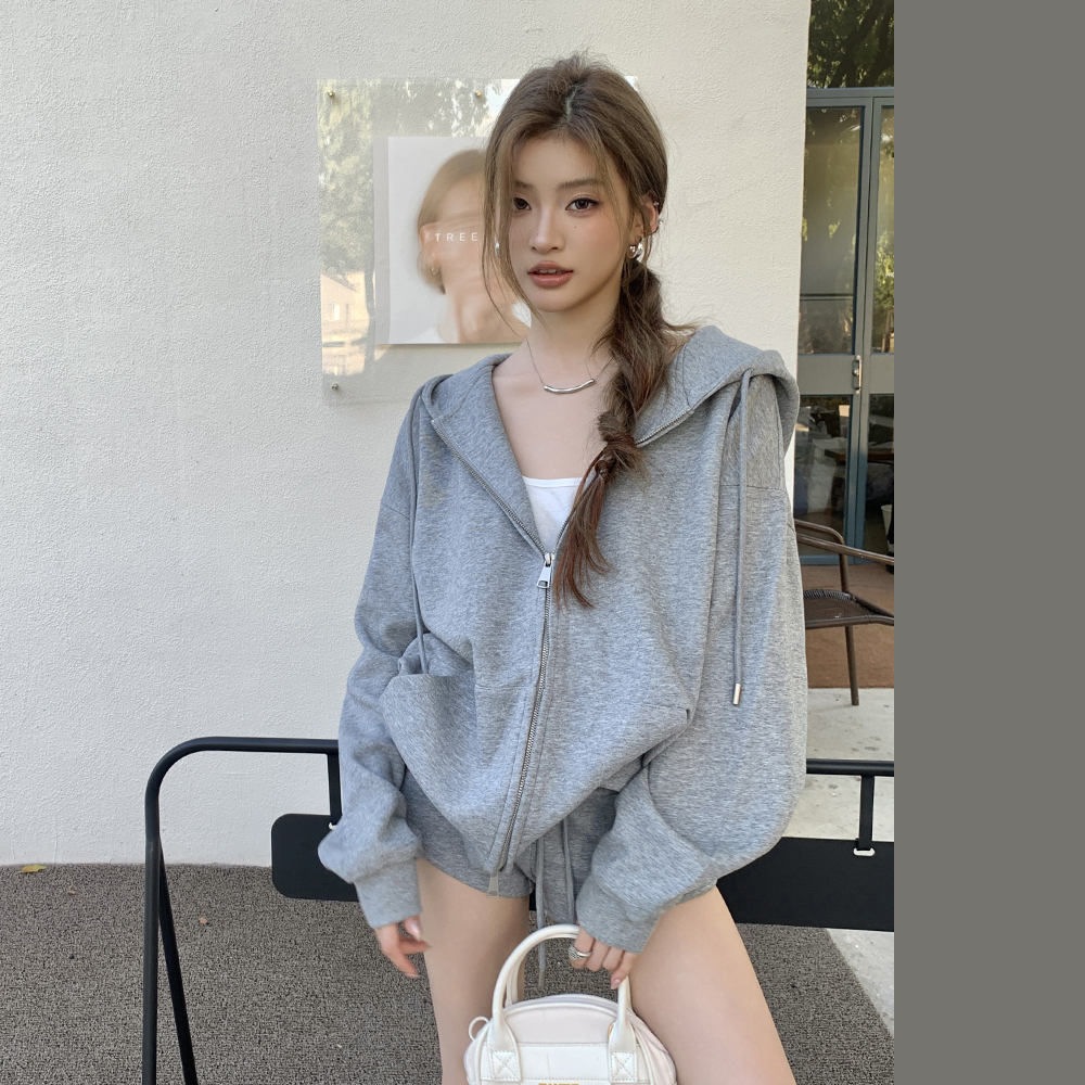 秋冬季实拍设计感宽松拉链单色气质口袋长袖连帽休闲百搭卫衣女装
