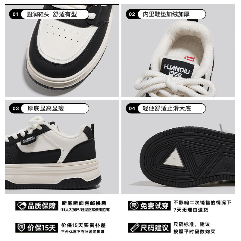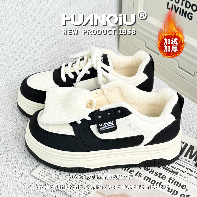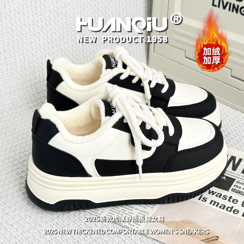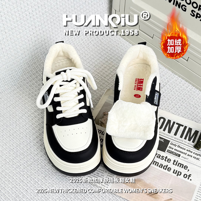 环球舒适冬季新款女鞋百搭厚底加绒保暖增高板鞋加厚不冻脚鞋子女