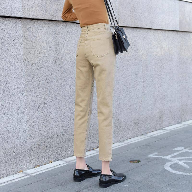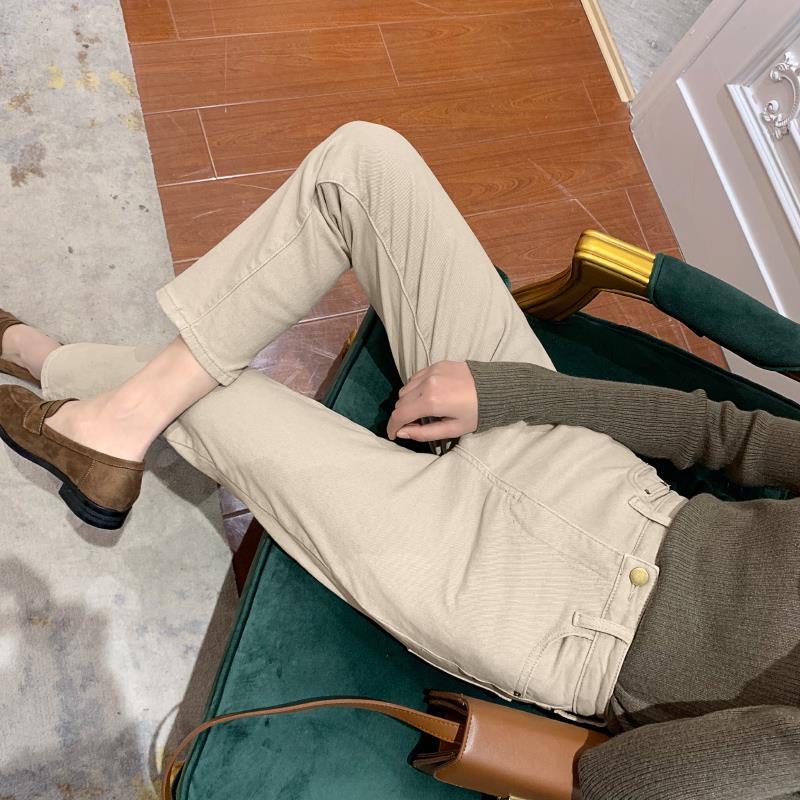 牛仔烟管裤女春秋季2025新款卡其色裤子小个子九分窄版法棍直筒裤